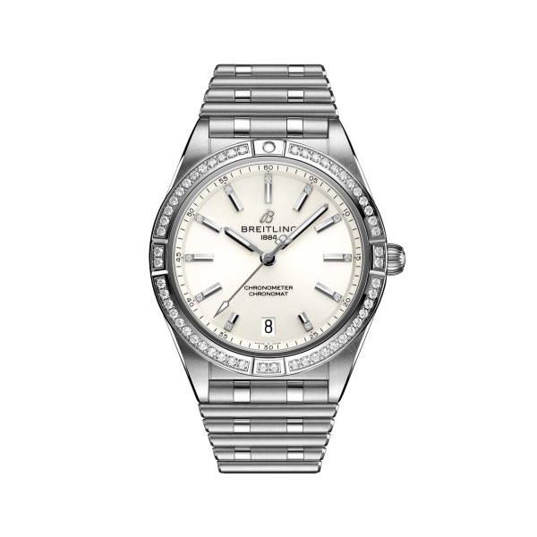 Ref. A10380591A1A1 - Stylish und doch elegant – die Chronomat Automatic 36 mit modernem Retro-Touch ist eine vielseitige, sportlich-schicke Uhr für jeden Anlass. Die breite Palette an Metallgehäusen reicht von coolem Edelstahl über die zweifarbigen Allrounder bis hin zu luxuriösem 18-karätigen Rotgold. Diamantbesetzte Lünetten und Zeiger sowie farbenfrohe Zifferblätter zaubern auf Wunsch ein zusätzliches Funkeln auf den Zeitmesser für Damen. Die Chronomat Automatic 36 wird von dem Breitling-Kaliber 10, einem COSC-zertifizierten Chronometer, angetrieben und auf dem legendären, bequemen Rouleaux-Armband mit Doppelfaltschliesse der Marke präsentiert.