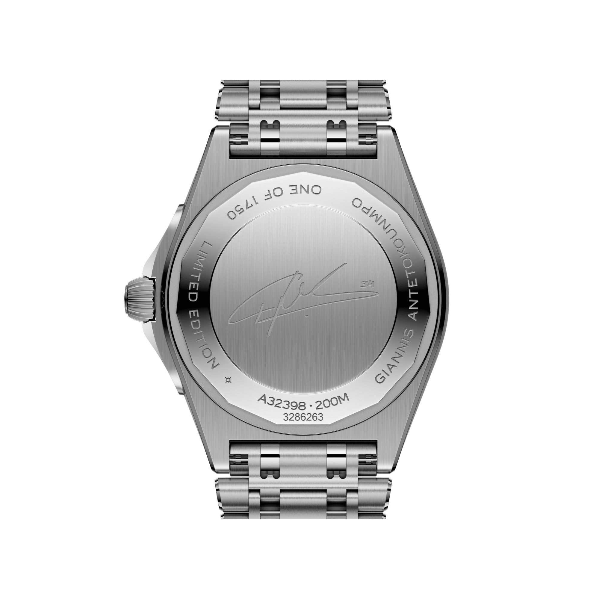 Beachten Sie bitte das Gegengewicht des zentralen Zeigers mit den Initialen des Athleten («GA») und die Basketballkontur auf dem laufenden Sekundenzähler des Chronographen – ein Verweis auf die Profession und Leidenschaft von Antetokounmpo. Der Limitierungshinweis «One of 1750» der Automatic GMT mit 40-mm-Edelstahlgehäuse bzw. «One of 250» des Chronometers mit 42-mm-Gehäuse aus 18-karätigem Rotgold ist auf dem Gehäuseboden eingraviert.