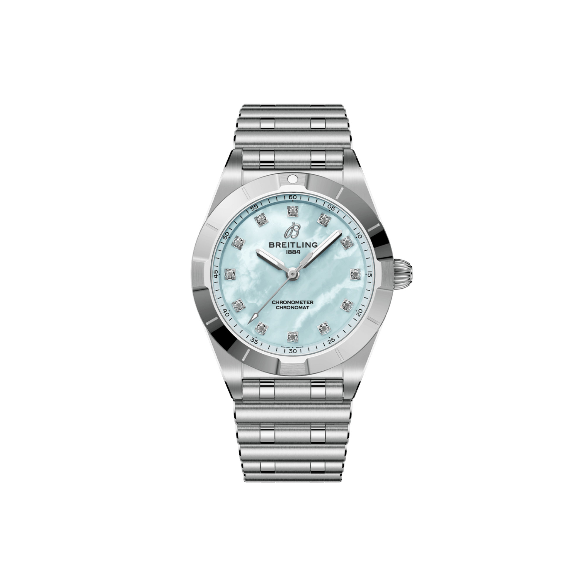 Ref. A72310101C1A1 - Die zierliche Chronomat 28 liegt voll im Trend und ist dennoch zeitlos – eine vielseitige, sportlich-schicke Uhr für jede Gelegenheit. Doch diese Blickfänger haben viel mehr zu bieten als nur ihre kompakte neue Grösse.Perlmutt in verschiedenen Farbtönen und rückverfolgbare, im Labor gezüchtete Diamanten verleihen den dezenten und doch edlen Zeitmessern den Charakter eines Schmuckstücks. Wählen Sie Gehäuse- und Rouleaux-Armband in der gewünschten Ausführung: von schlichtem Edelstahl bis zum zweifarbigen Metallmix – alle mit einer komfortablen Doppelfaltschliesse ausgestattet. Die Chronomat 28 wird von einem Breitling-Kaliber 72, einem COSC-zertifizierten SuperQuartz™-Chronometer, angetrieben.