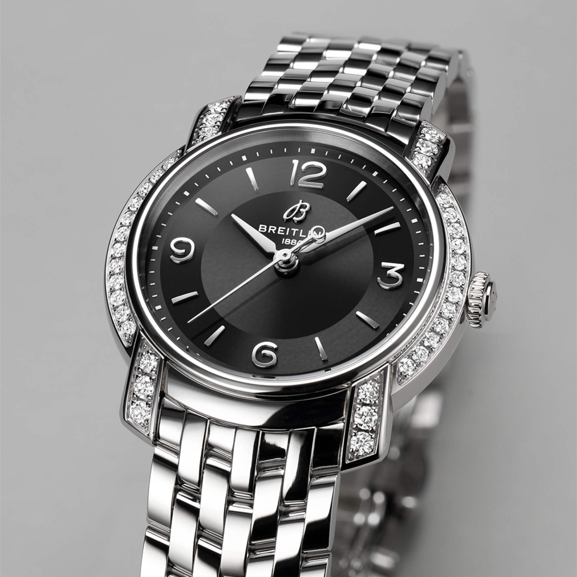 Ref. A77330671B1A1 - In den 1940er-Jahren führte Willy Breitling die Linie Premier ein und machte den Chronographen von einem Präzisionswerkzeug zu einem Ausdruck von Stil, mit raffinierten Materialien, eleganten Details und sogar einem der ersten Chronographen, die speziell für Frauen entworfen wurden. Später wurde seine schicke und charismatische Frau Beatrice zu seiner Muse und zu einer bestimmenden Kraft in der kreativen Ausrichtung der Marke. Nun ist die Zeit gekommen, diese ungekünstelte Eleganz mit der neuen Lady Premier in die Neuzeit zu übertragen. Skulpturale Silhouetten, strahlende Farbtöne und kaskadierende Diamanten definieren die verspielte und dennoch gehobene Designsprache.