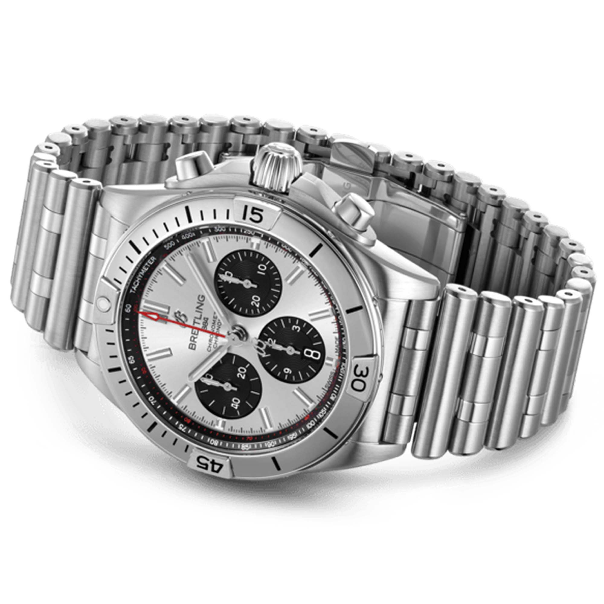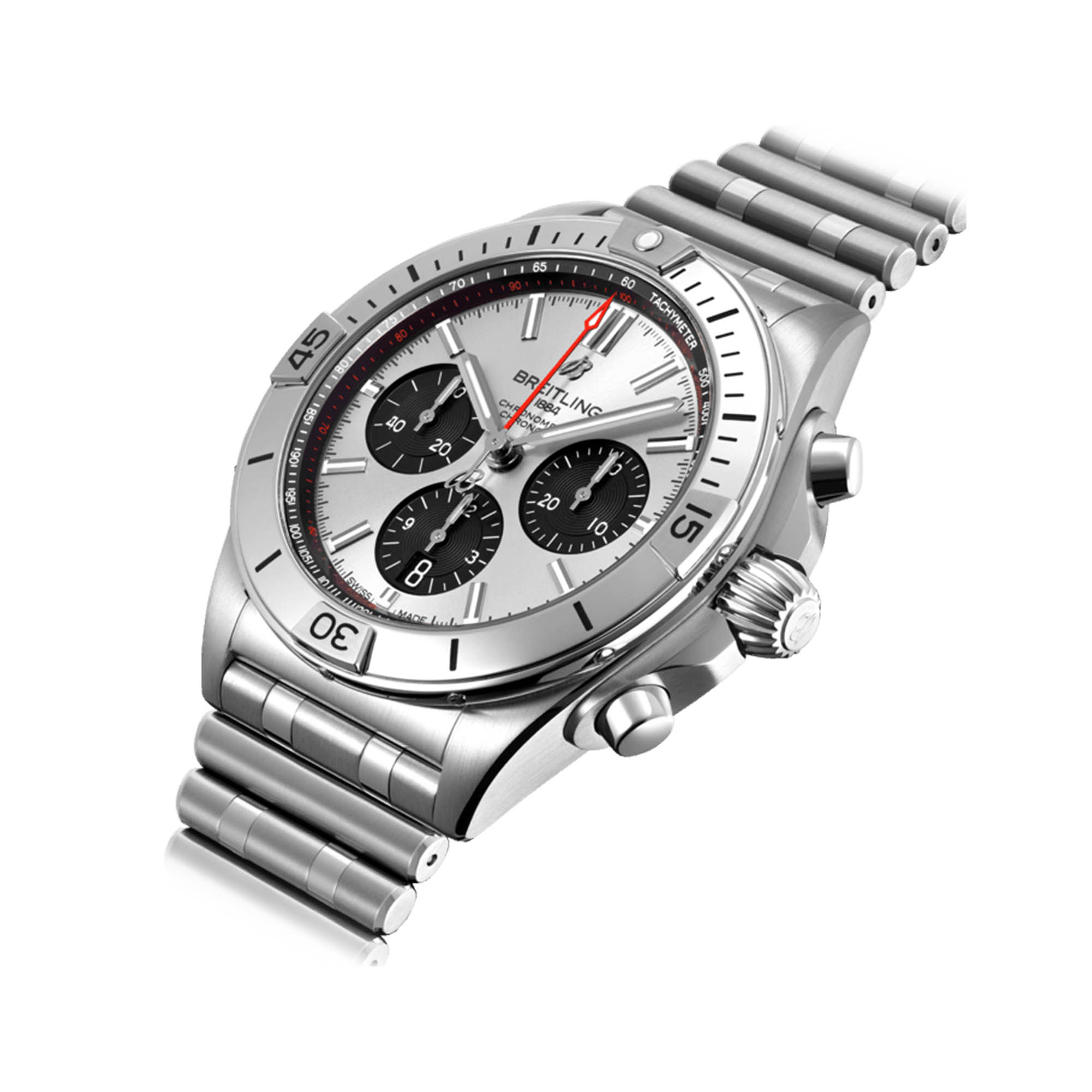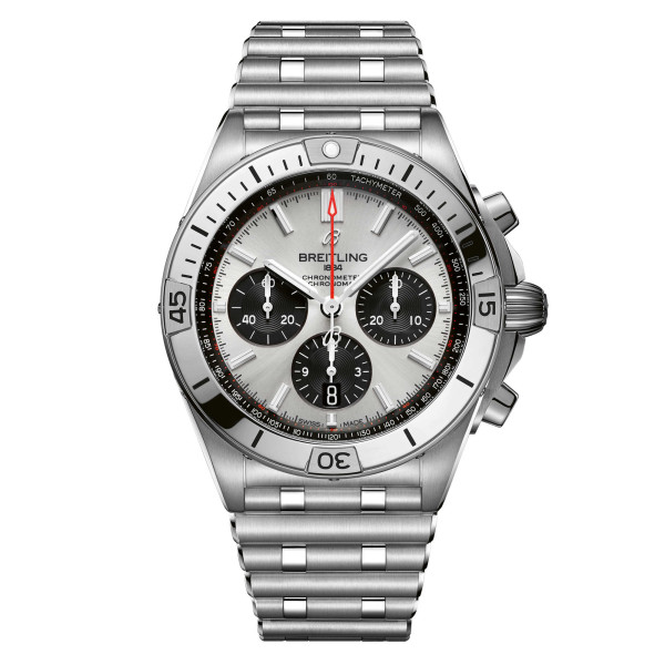 Das Modell verfügt über ein 42-mm-Gehäuse und die legendäre Lünette mit den vier Reitern. Die Chronomat ist mit verschiedenen farbenfrohen Zifferblättern lieferbar und auf das charakteristische Rouleaux-Armband aus Metall oder Kautschuk abgestimmt. Angetrieben wird das Modell vom Breitling-Manufakturkaliber 01, einem COSC-zertifizierten Chronometer.