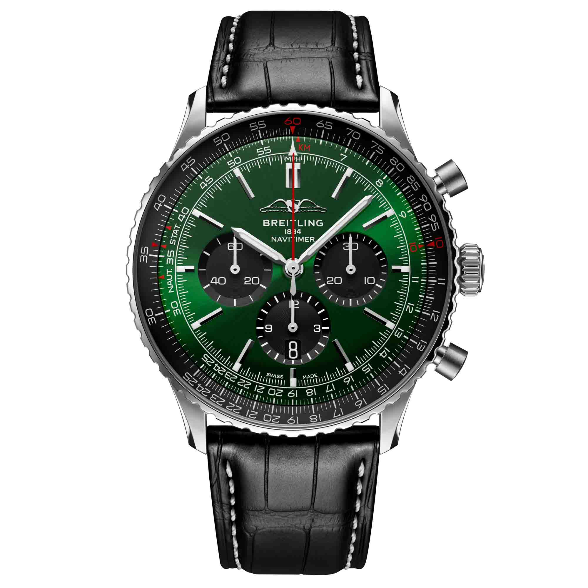 Dunkelgrün mit farblich abgesetzten Chronographenzählern und