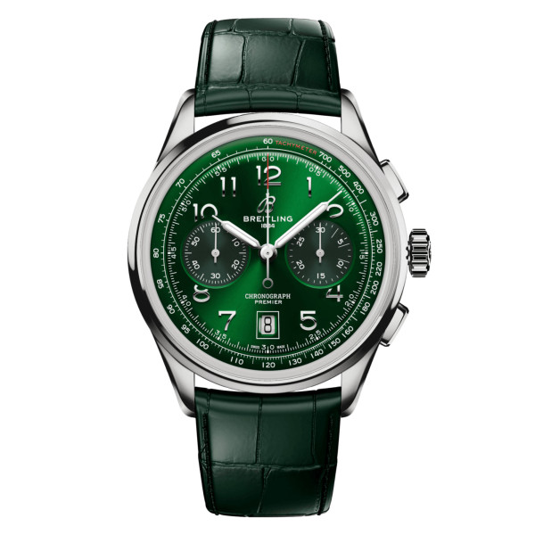 Ref. AB0145371L1P2 - Bereits Anfang der 1940er Jahre träumt Willy Breitling von einer Zeit nach dem Krieg, in der Nützlichkeit ungezügeltem Optimismus Platz machen würde. Er begann mit der Arbeit an einem Chronographen, der funktional, aber auch einzigartig elegant und unendlich lange tragbar sein sollte—in seinen Worten: «der unverwechselbare Stempel tadellosen Geschmacks.» Diese neue Linie nannte er «Premier». Beim Entwurf der neuen Premier bewahrte Breitling unverkennbare Vintage-Premier-Details wie die glatte feste Lünette, das Twin-Register-Zifferblatt, die eleganten rechteckigen Drücker und die aufgebrachten arabischen Ziffern. Der Premier B01 Chronograph 42 ist in verschiedenen Zifferblattfarben und Gehäusematerialien erhältlich. Sie ist wahlweise mit einem klassischen Alligatorlederarmband oder einem eleganten siebenreihigen Metallarmband erhältlich. Auch die heutige Premier entspricht den kompromisslosen technischen Standards von Willy Breitling mit ihrem aussergewöhnlichen Uhrwerk mit Selbstaufzug—dem COSC-zertifizierten Breitling-Manufakturkaliber 01—, welches auf höchste Präzision, Zuverlässigkeit und Funktionalität ausgelegt ist.
