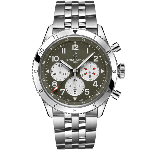 Ref. AB04452A1L1A1 - Von den ersten mutigen Starts bis zur Geburtsstunde des kommerziellen Flugverkehrs ist die Geschichte von Breitling untrennbar mit der Luftfahrt verbunden. In den 1930er-Jahren machte sich das Breitling Huit Aviation Department mit der Entwicklung von Präzisions-Cockpituhren einen Namen. Zwei Jahrzehnte später stellte es ein weiteres neuartiges Fluginstrument vor – nun allerdings in tragbarer Form: die Ref. 765 AVI. Diese wegweisende Fliegeruhr schuf den technischen Hintergrund für die heutige Super AVI, eine Kollektion, die von der Robustheit der berühmten frühen Flugzeuge inspiriert ist.