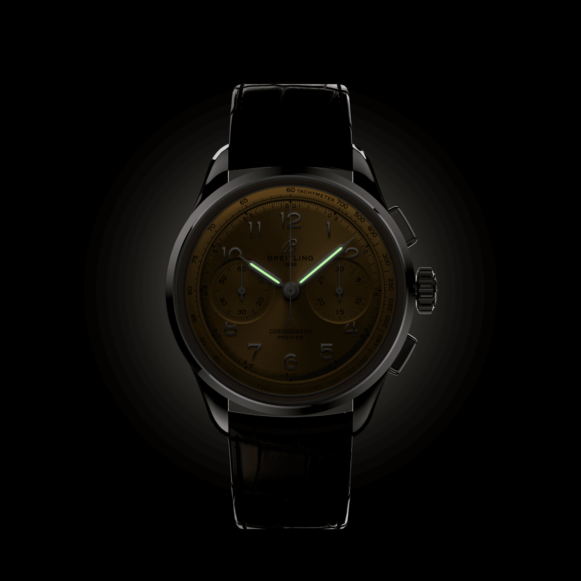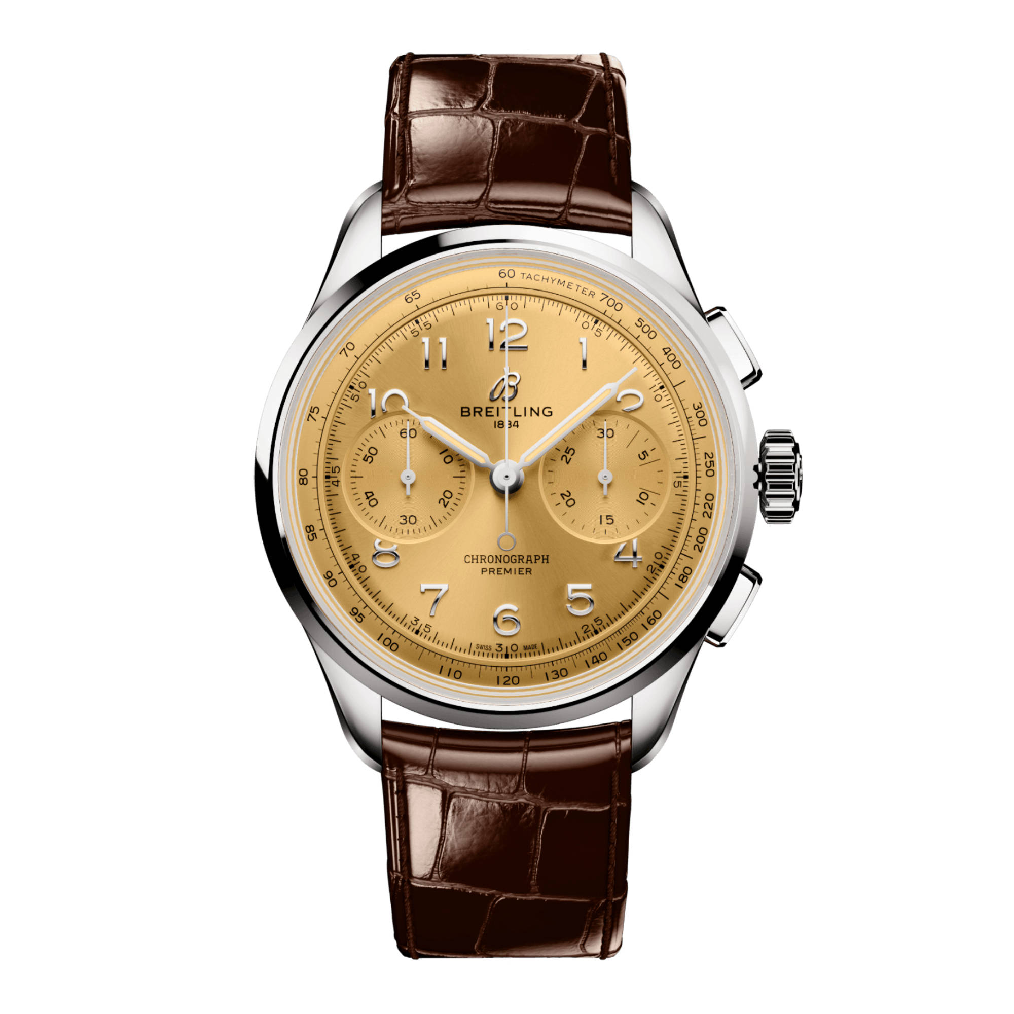Ref. AB0930F51H1P1 - Bereits Anfang der 1940er Jahre träumt Willy Breitling von einer Zeit nach dem Krieg, in der Nützlichkeit ungezügeltem Optimismus Platz machen würde. Er begann mit der Arbeit an einem Chronographen, der funktional, aber auch einzigartig elegant und unendlich lange tragbar sein sollte—in seinen Worten: «der unverwechselbare Stempel tadellosen Geschmacks.» Diese neue Linie nannte er «Premier». Beim Entwurf der neuen Premier bewahrte Breitling unverkennbare Vintage-Premier-Details wie die glatte feste Lünette, das Twin-Register-Zifferblatt, die eleganten rechteckigen Drücker und die aufgebrachten arabischen Ziffern. Der Premier B01 Chronograph 42 ist in verschiedenen Zifferblattfarben und Gehäusematerialien erhältlich. Sie ist wahlweise mit einem klassischen Alligatorlederarmband oder einem eleganten siebenreihigen Metallarmband erhältlich. Auch die heutige Premier entspricht den kompromisslosen technischen Standards von Willy Breitling mit ihrem aussergewöhnlichen Uhrwerk mit Selbstaufzug—dem COSC-zertifizierten Breitling-Manufakturkaliber 01—, welches auf höchste Präzision, Zuverlässigkeit und Funktionalität ausgelegt ist.