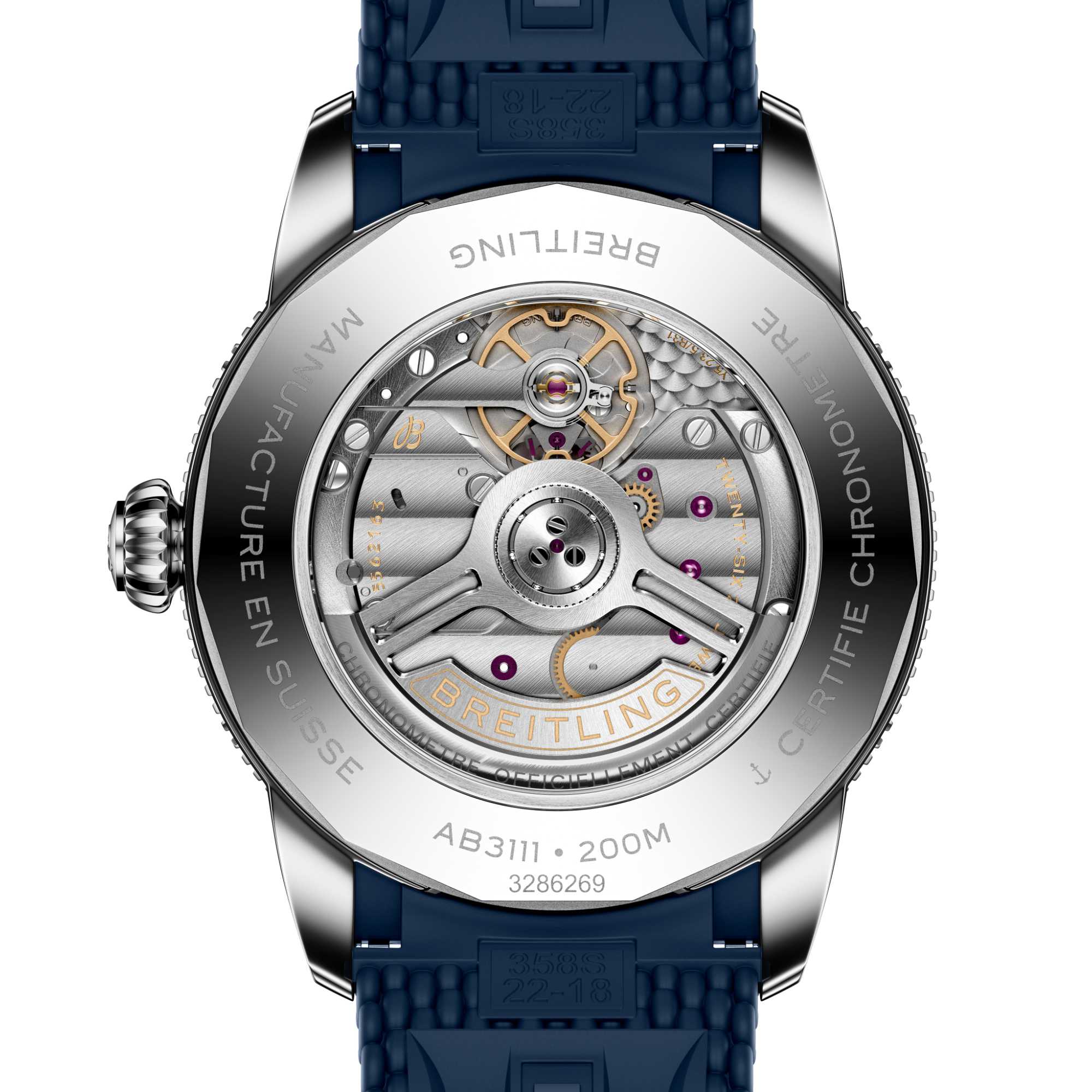 Auch heute noch ist diese Philosophie das Herzstück der Superocean Heritage. Die Seele der 50er Jahre, aber im neuen Kleid für die Gegenwart. Die neueste Superocean Heritage baut auf allem auf, was das Original unverwechselbar gemacht hat, und verfeinert es. Die Kollektion führt das Automatik-Uhrwerk B31 ein, Breitlings erstes exklusives Manufaktur-Kaliber mit drei Zeigern. Eine Lünette mit Keramikeinlage bietet außergewöhnliche Kratzfestigkeit, während die integrierten Armbänder aus Mesh-Metall oder Mesh-Kautschuk eng am Gehäuse anliegen und mit Faltschließen für ein sauberes, wasserdichtes Finish gesichert werden. Ein diskretes Datumsfenster auf sechs Uhr und die originalen Signaturzeiger– Pfeil für die Stunden, Speer für die Minuten – sorgen für Ablesbarkeit und Ausgewogenheit, über oder unter der Oberfläche.