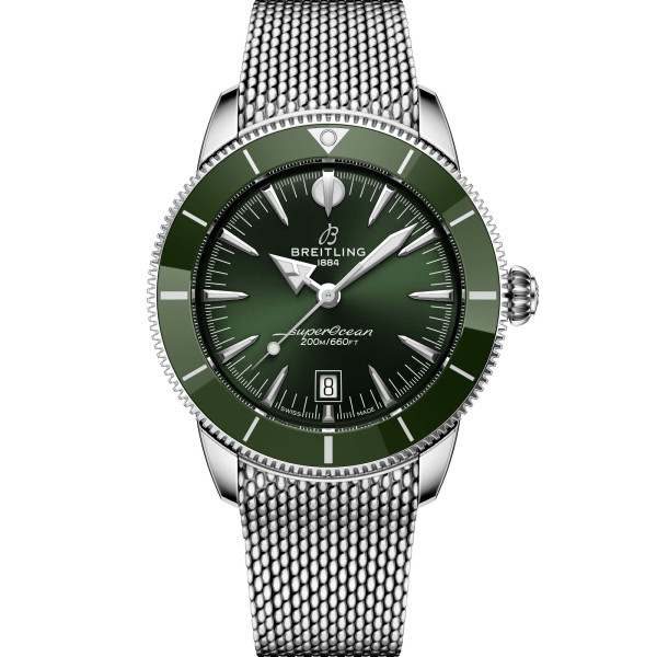 Auch heute noch ist diese Philosophie das Herzstück der Superocean Heritage. Die Seele der 50er Jahre, aber im neuen Kleid für die Gegenwart. Die neueste Superocean Heritage baut auf allem auf, was das Original unverwechselbar gemacht hat, und verfeinert es. Die Kollektion führt das Automatik-Uhrwerk B31 ein, Breitlings erstes exklusives Manufaktur-Kaliber mit drei Zeigern. Eine Lünette mit Keramikeinlage bietet außergewöhnliche Kratzfestigkeit, während die integrierten Armbänder aus Mesh-Metall oder Mesh-Kautschuk eng am Gehäuse anliegen und mit Faltschließen für ein sauberes, wasserdichtes Finish gesichert werden. Ein diskretes Datumsfenster auf sechs Uhr und die originalen Signaturzeiger– Pfeil für die Stunden, Speer für die Minuten – sorgen für Ablesbarkeit und Ausgewogenheit, über oder unter der Oberfläche.