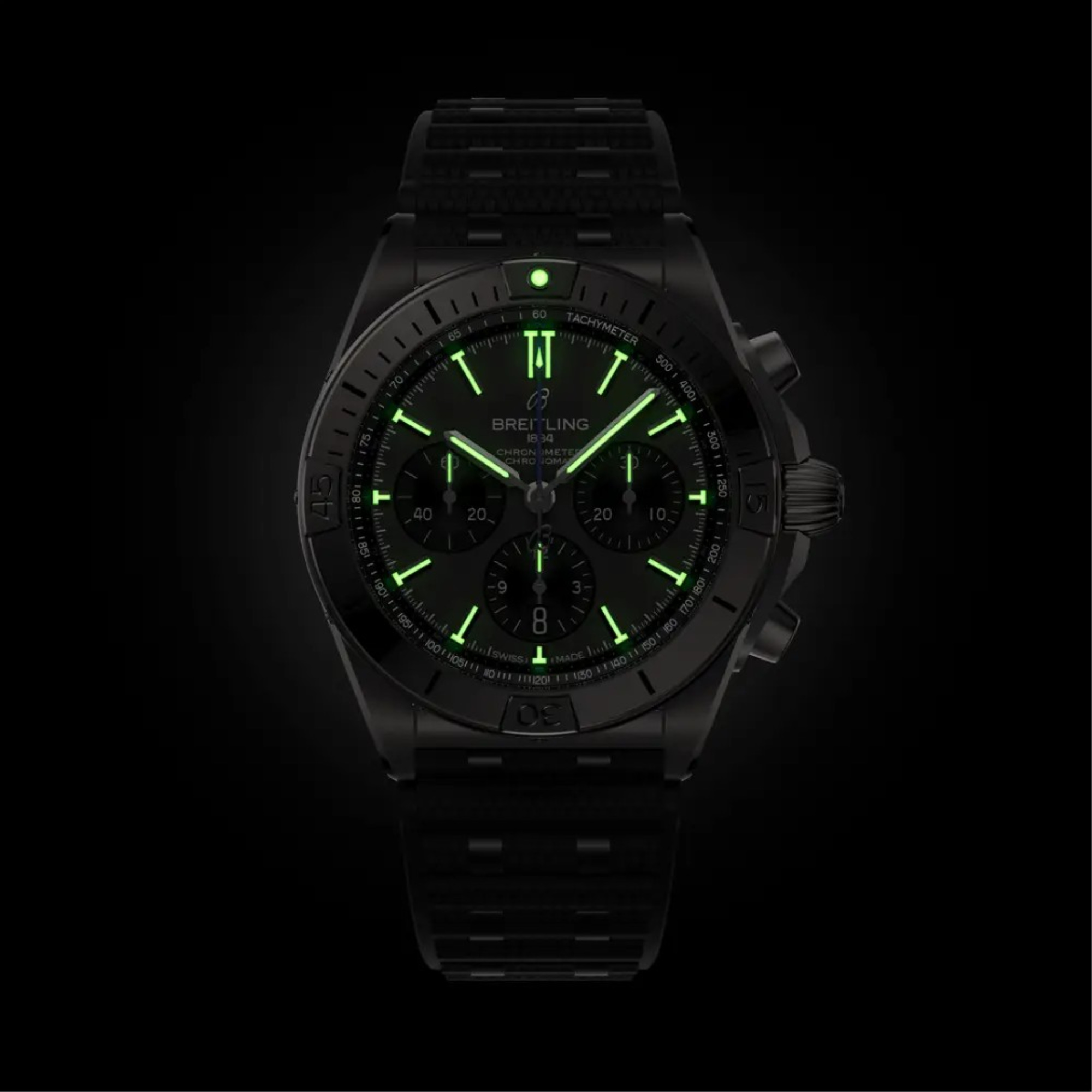 Die in verschiedenen Materialien wie Edelstahl, 18-karätigem Rotgold und Titan erhältliche Chronomat verfügt über ein Gehäuse von 42 mm und eine unverwechselbare Lünette mit vier Reitern bei den Viertelstundenindizes. Sie ist mit verschiedenen farbenfrohen Zifferblättern erhältlich und auf das charakteristische Rouleaux-Armband aus Metall oder Kautschuk abgestimmt. Originalgetreu wird die Chronomat vom Breitling-Manufakturkaliber 01, einem COSC-zertifizierten Chronometer, angetrieben.