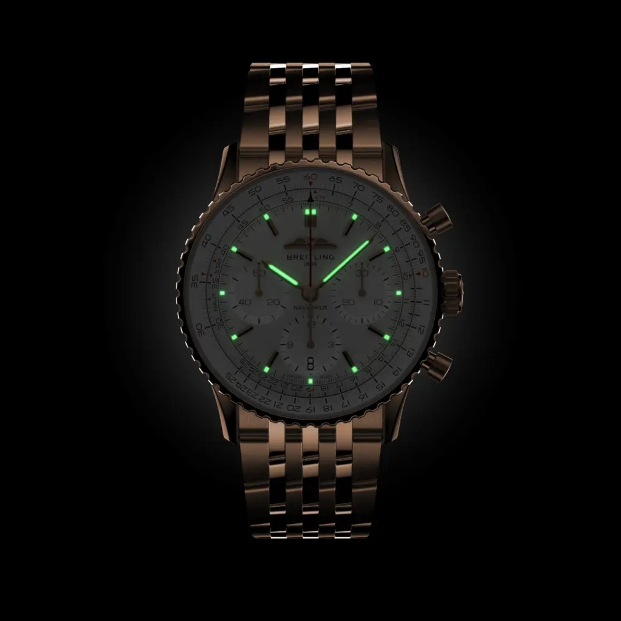 Ref. RB0139211G1R1 - Zum 70. Geburtstag des legendären Zeitmessers von Breitling präsentiert die Marke eine neu gestaltete Kollektion, die sich durch ausdrucksstarke Farben, optimiertes Styling und unglaubliche Reisen auszeichnet. Seit bereits 70 Jahren erfreut sich die Original-Fliegeruhr von Breitling grosser Beliebtheit bei Piloten und Trendsettern gleichermassen. Sie wurde bereits von einem Astronauten im All und von den grössten Stars der Welt getragen. Definitiv DIE Zeitmesser-Ikone von Breitling. Breitling ehrt diese Legende mit der Lancierung einer neuen Navitimer, natürlich mit den klassischen Merkmalen, aber mit modernen Feinheiten.