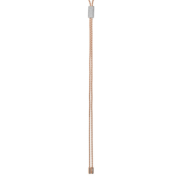 Ref. 89503CX_BB_R_RBX_090 - Aria besteht aus einer neuen zarten, feinmaschigen Goldkette und richtet sich an aufstrebende Luxuskonsumenten, die den Athleisure-Modetrend aufgreifen. Die Stücke der Aria-Kollektion (Ohrringe und Halsketten) wurden so entworfen, dass sie in den drei Goldfarben gemischt und aufeinander abgestimmt werden können, mit goldenen Zylindern, die mit weißen oder schwarzen Diamanten besetzt sind, für Damen und Herren.