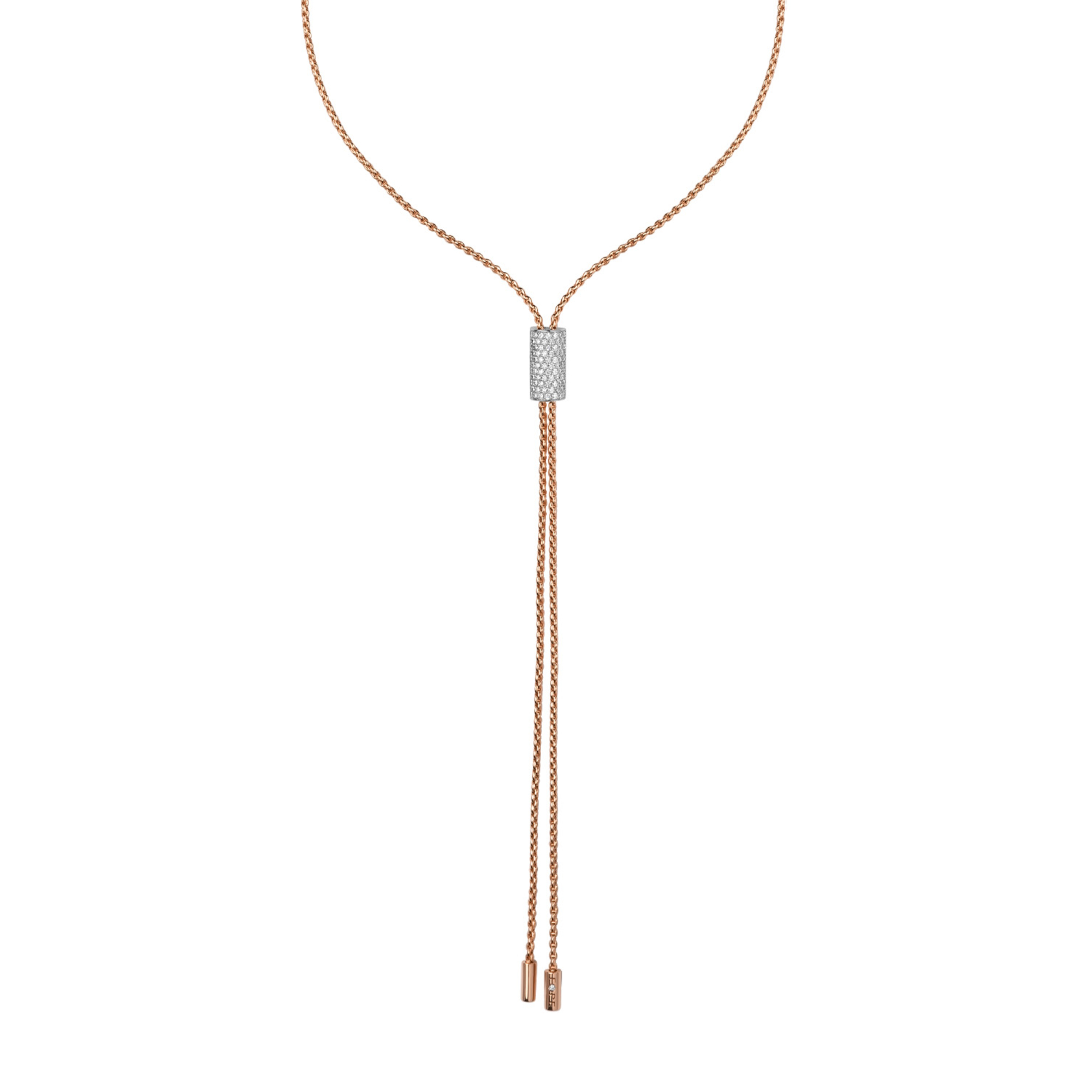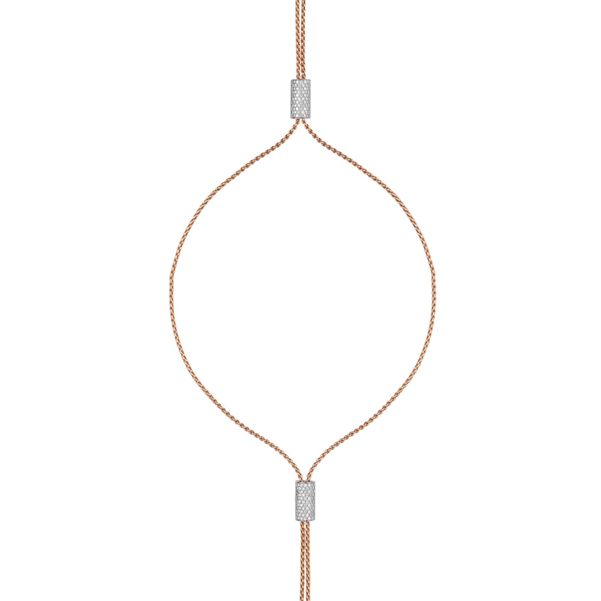 Ref. 89703CX_BB_R_RBX_090 - Aria besteht aus einer neuen zarten, feinmaschigen Goldkette und richtet sich an aufstrebende Luxuskonsumenten, die den Athleisure-Modetrend aufgreifen. Die Stücke der Aria-Kollektion (Ohrringe und Halsketten) wurden so entworfen, dass sie in den drei Goldfarben gemischt und aufeinander abgestimmt werden können, mit goldenen Zylindern, die mit weißen oder schwarzen Diamanten besetzt sind, für Damen und Herren.