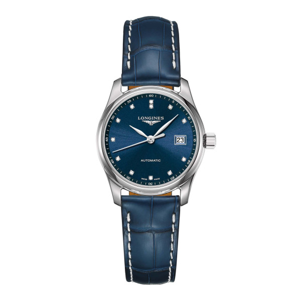 Blaues Alligatorleder mit Dreifach-Sicherheitsfaltschließe und Drückern