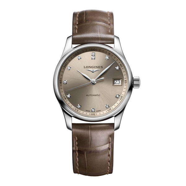 Beiges Alligatorlederarmband mit Dreifach-Sicherheitsfaltschließe und Drückern