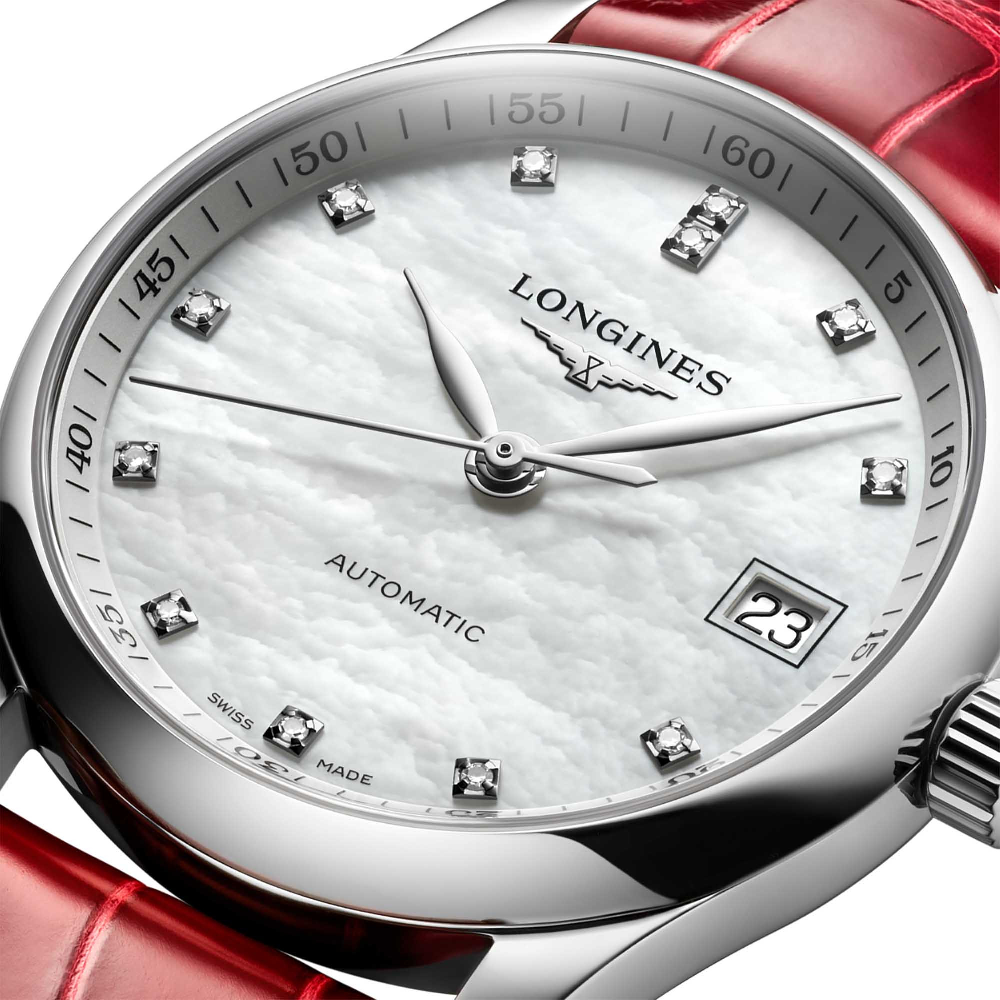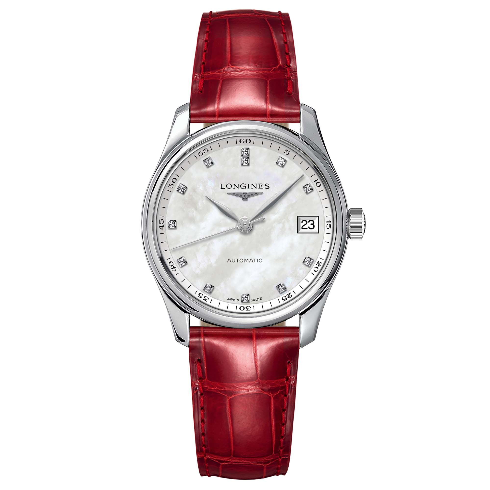 Rotes Alligatorlederarmband mit Dreifach-Sicherheitsfaltschließe und Drückern