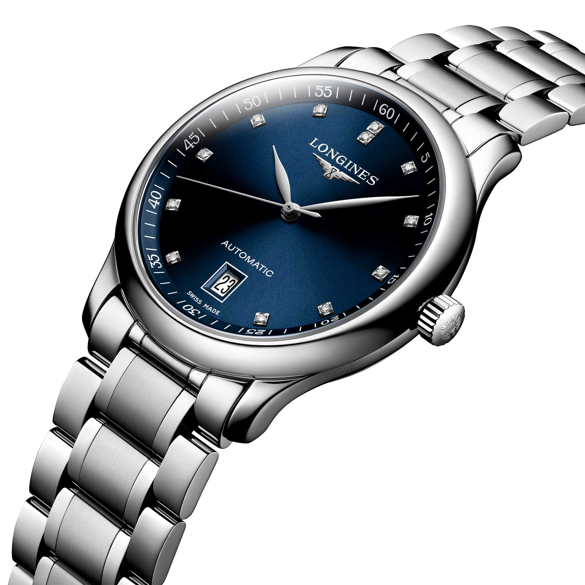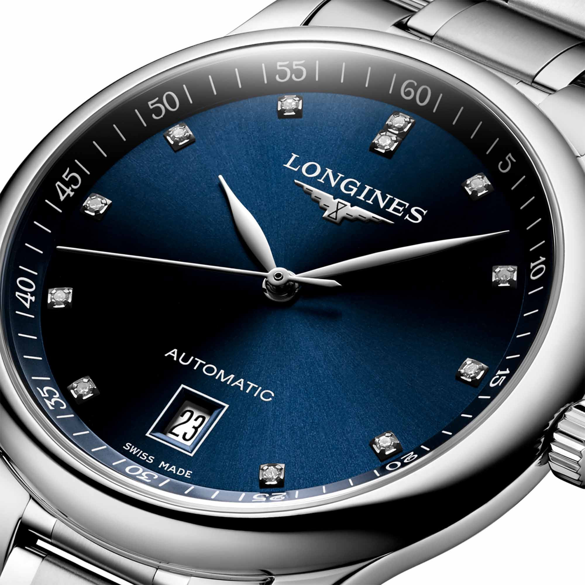 Blau mit "Sonnenstrahldekor" mit zwölf Diamantindizes 0,055 ct. Top Wesselton VS-SI