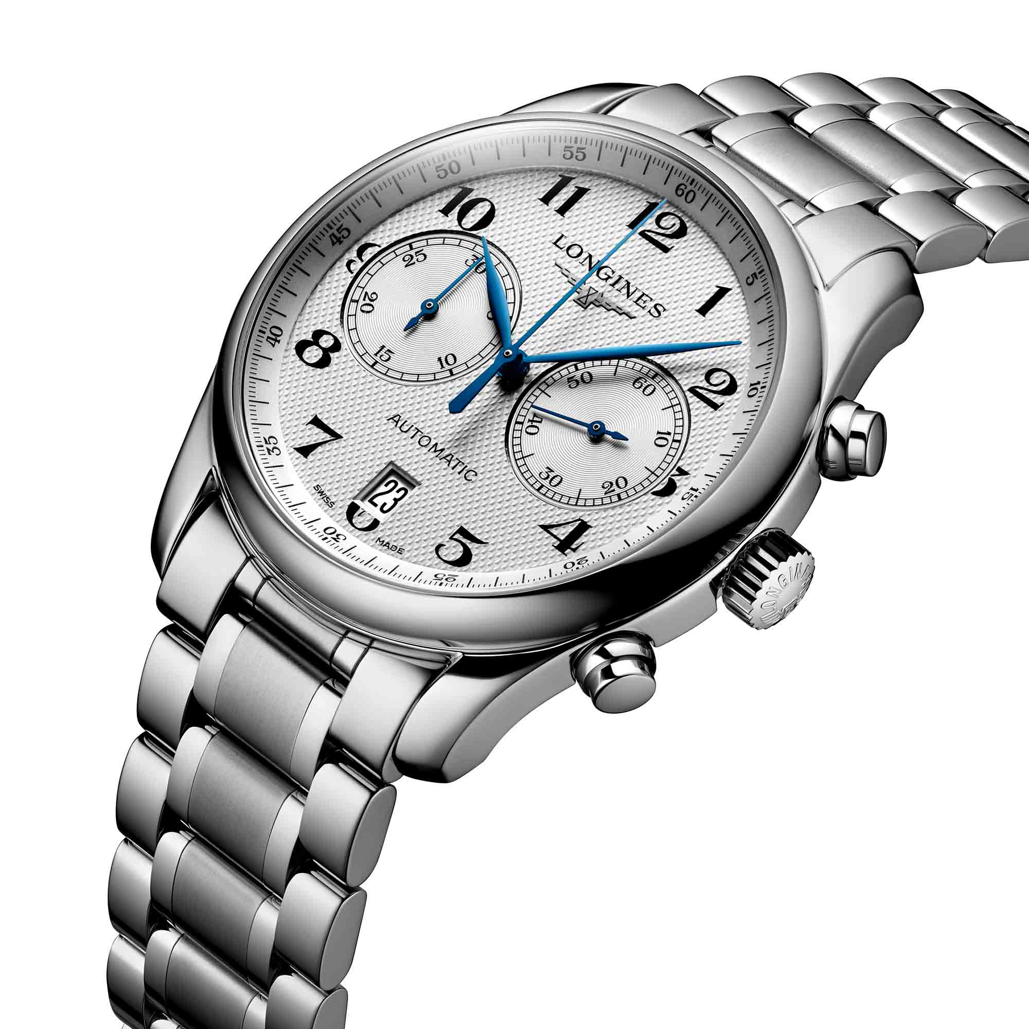 Chronograph: Zentraler 60-Sekunden-Zeiger und 30-Minuten-Zähler bei 9 Uhr