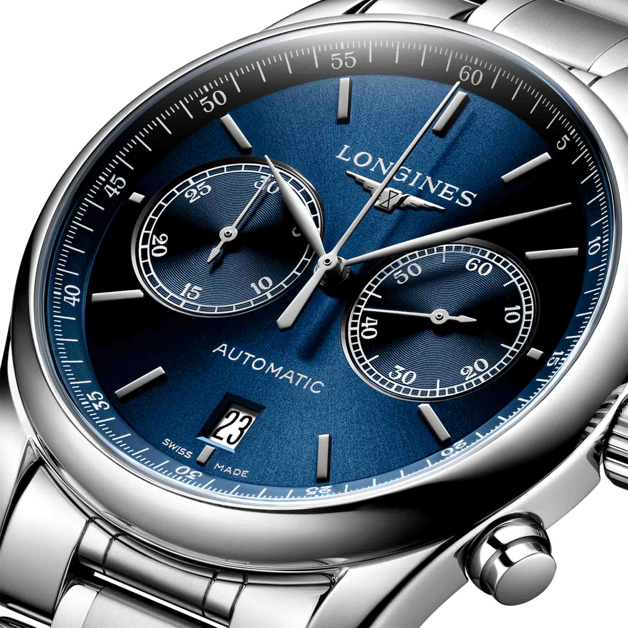 Chronograph: Zentraler 60-Sekunden-Zeiger und 30-Minuten-Zähler