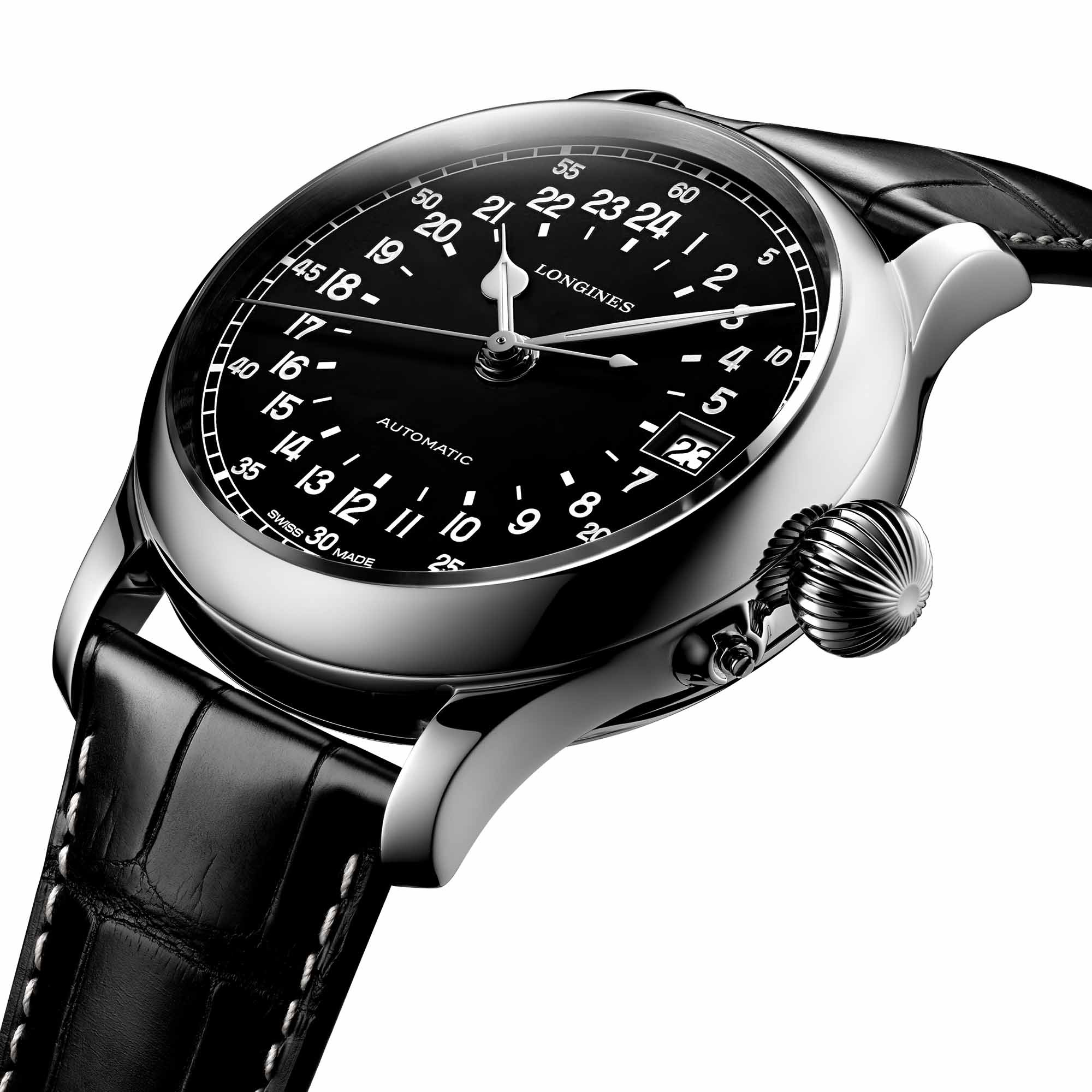 Stundenanzeige auf einer 24-Stunden-Skala auf dem Zifferblatt