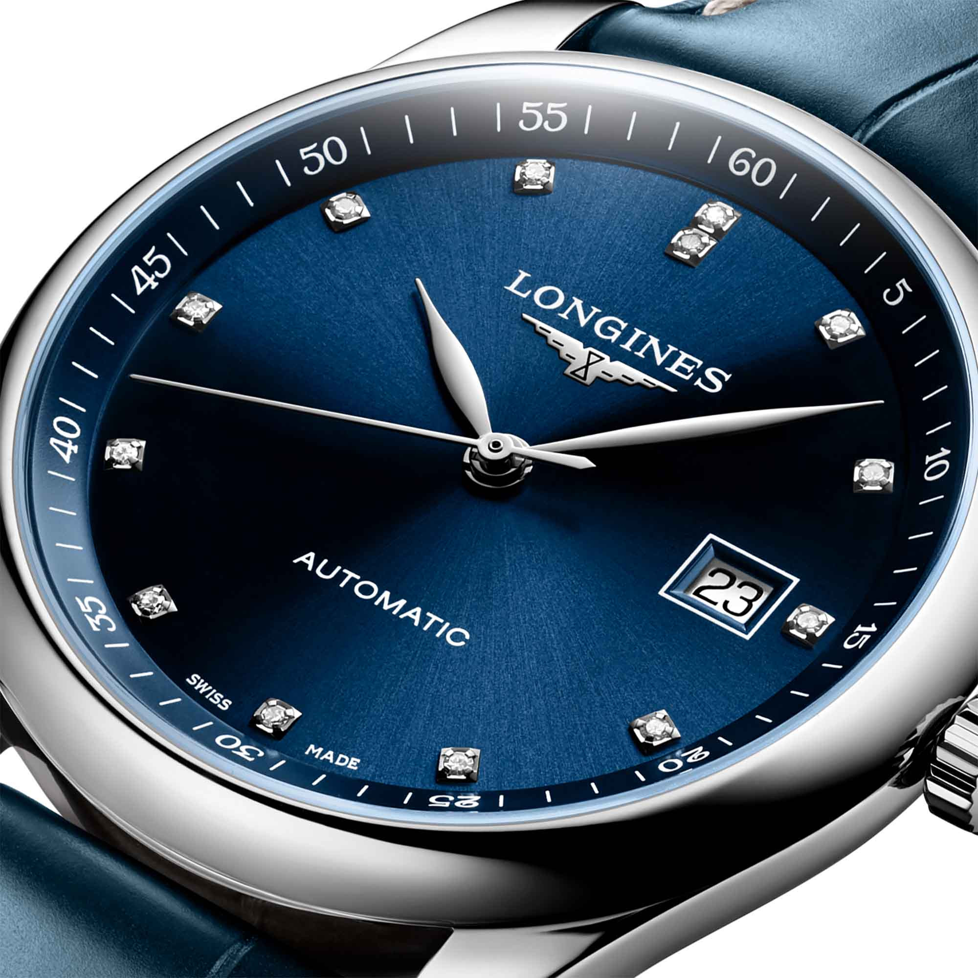 Blaues Alligatorleder mit Dreifach-Sicherheitsfaltschließe und Drückern