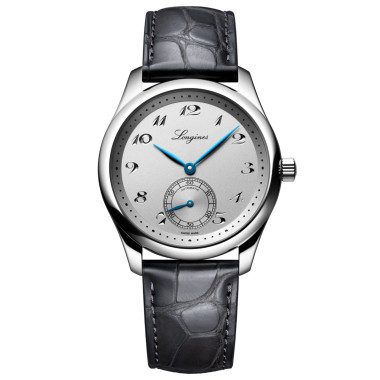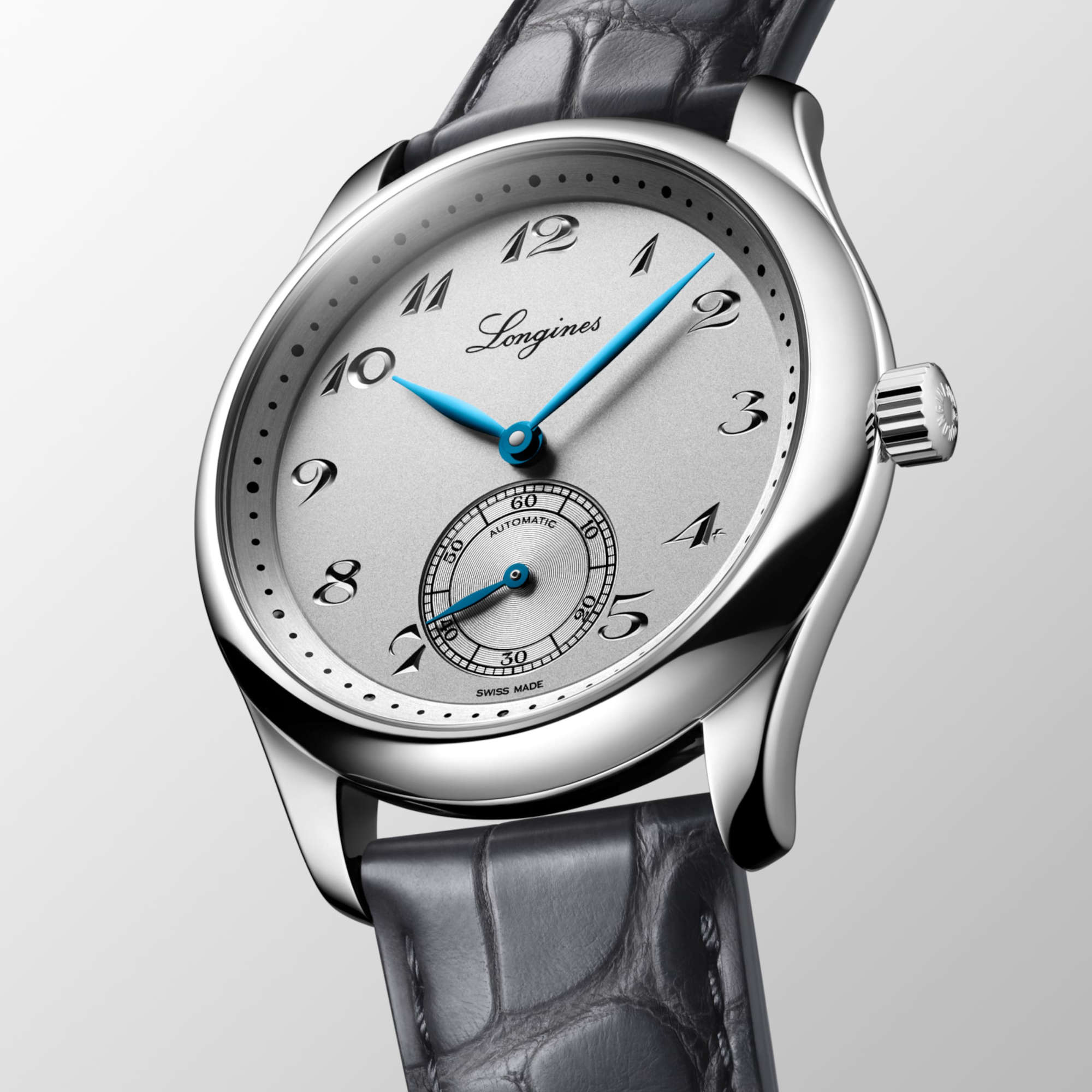 Graues Alligatorlederarmband mit Dreifach-Sicherheitsfaltschließe und Drückern