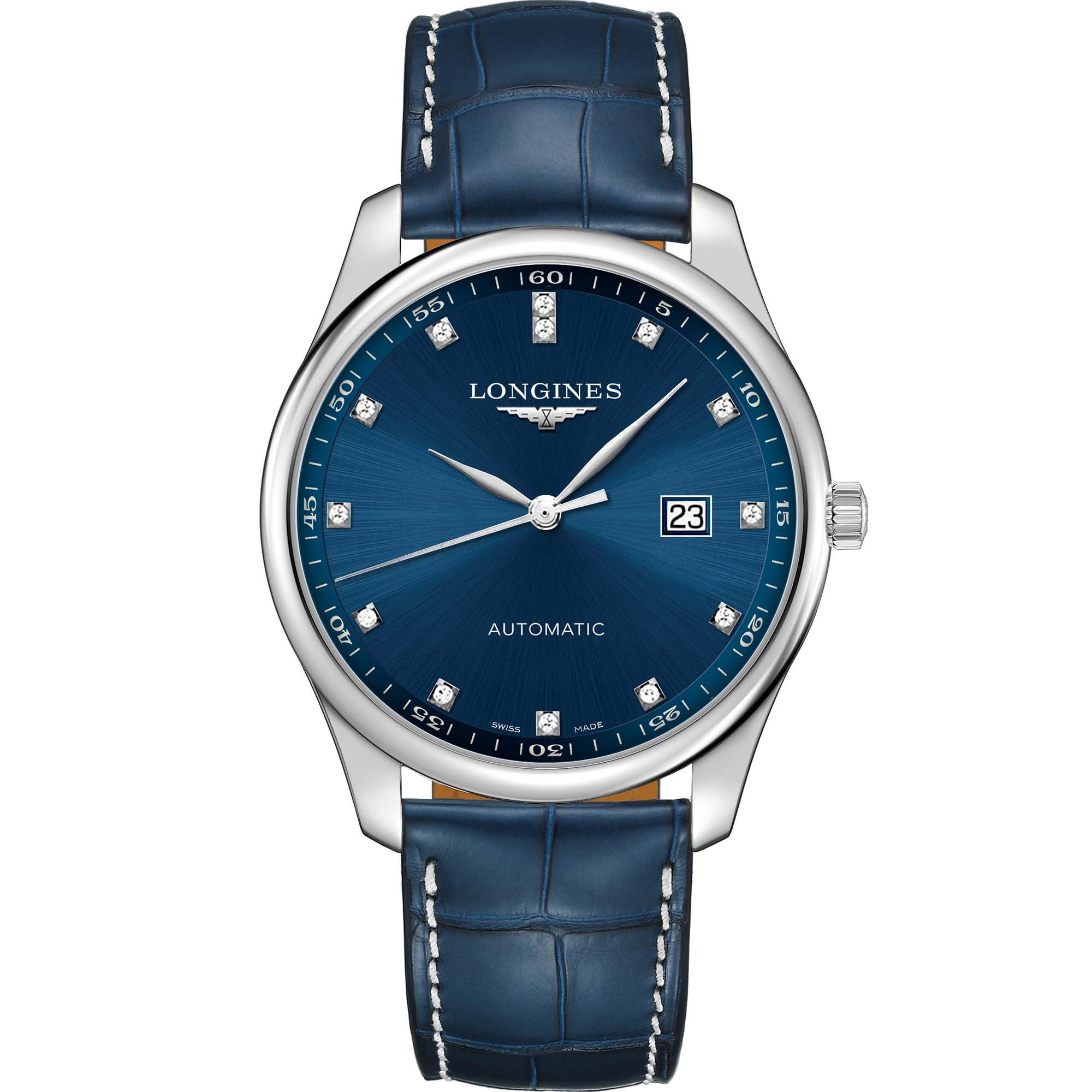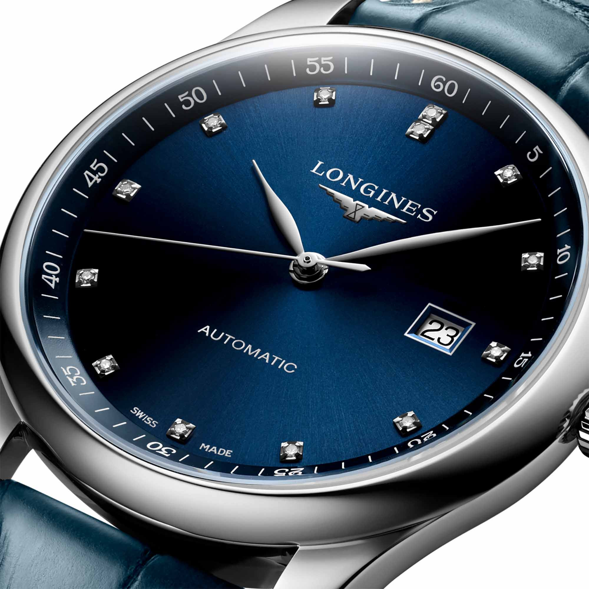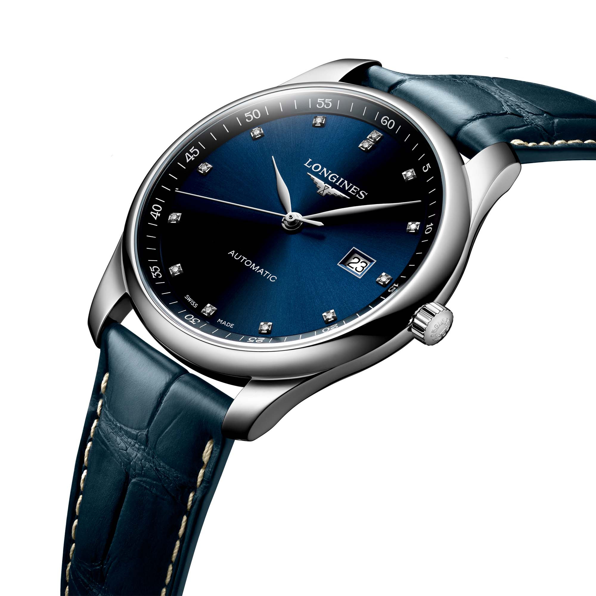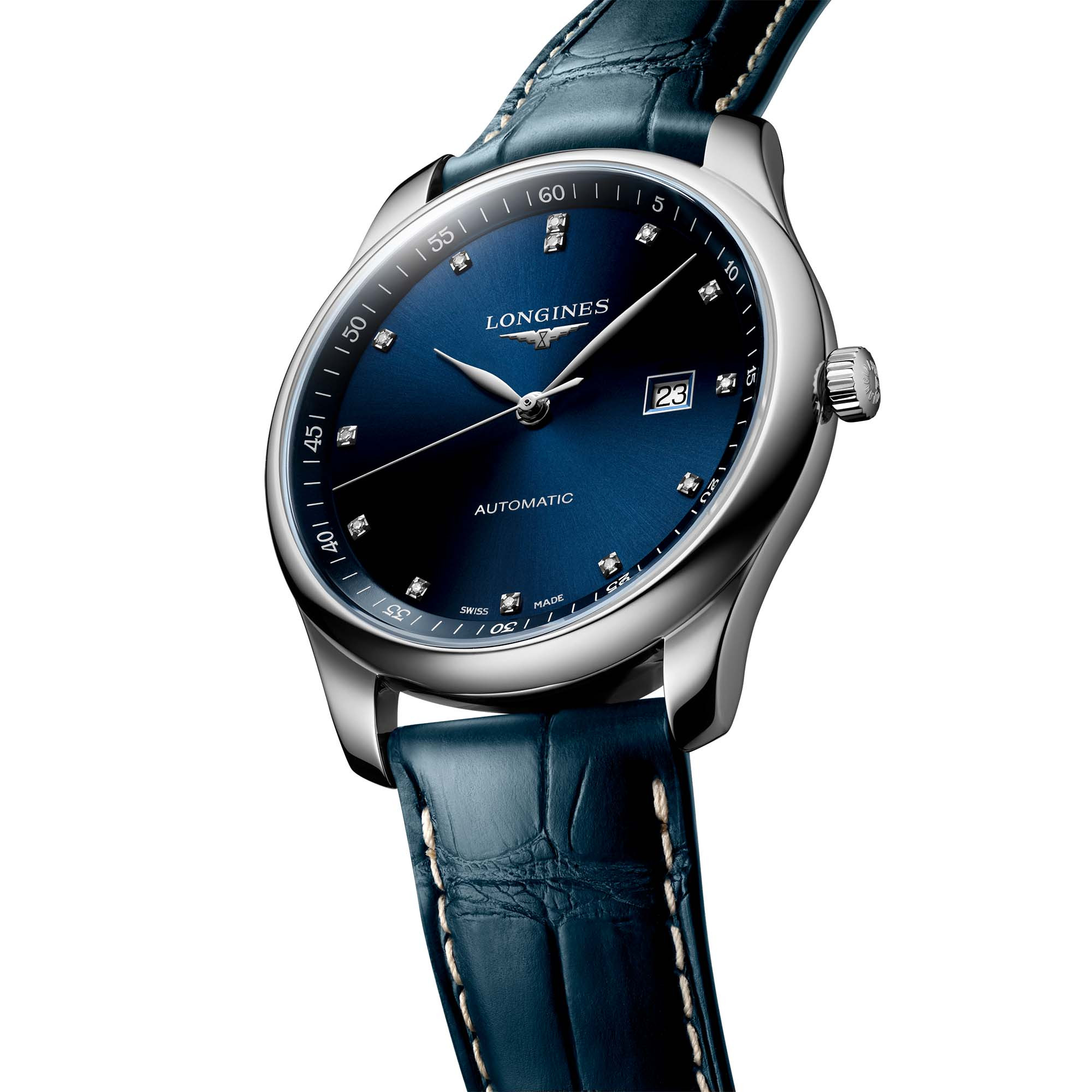 Blaues Alligatorlederarmband mit Dreifach-Sicherheitsfaltschließe und Drückern