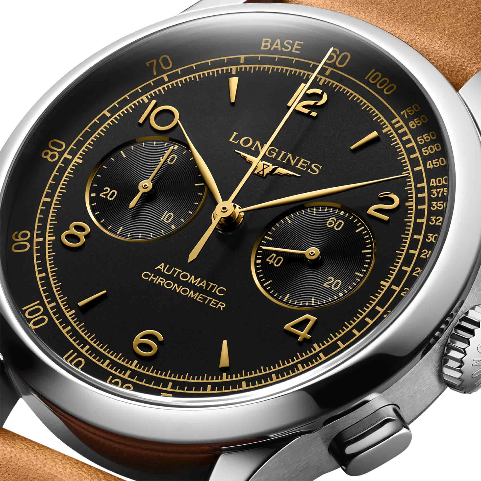 Chronograph: Zentraler 60-Sekunden-Zeiger und 30-Minuten-Zähler bei 9 Uhr