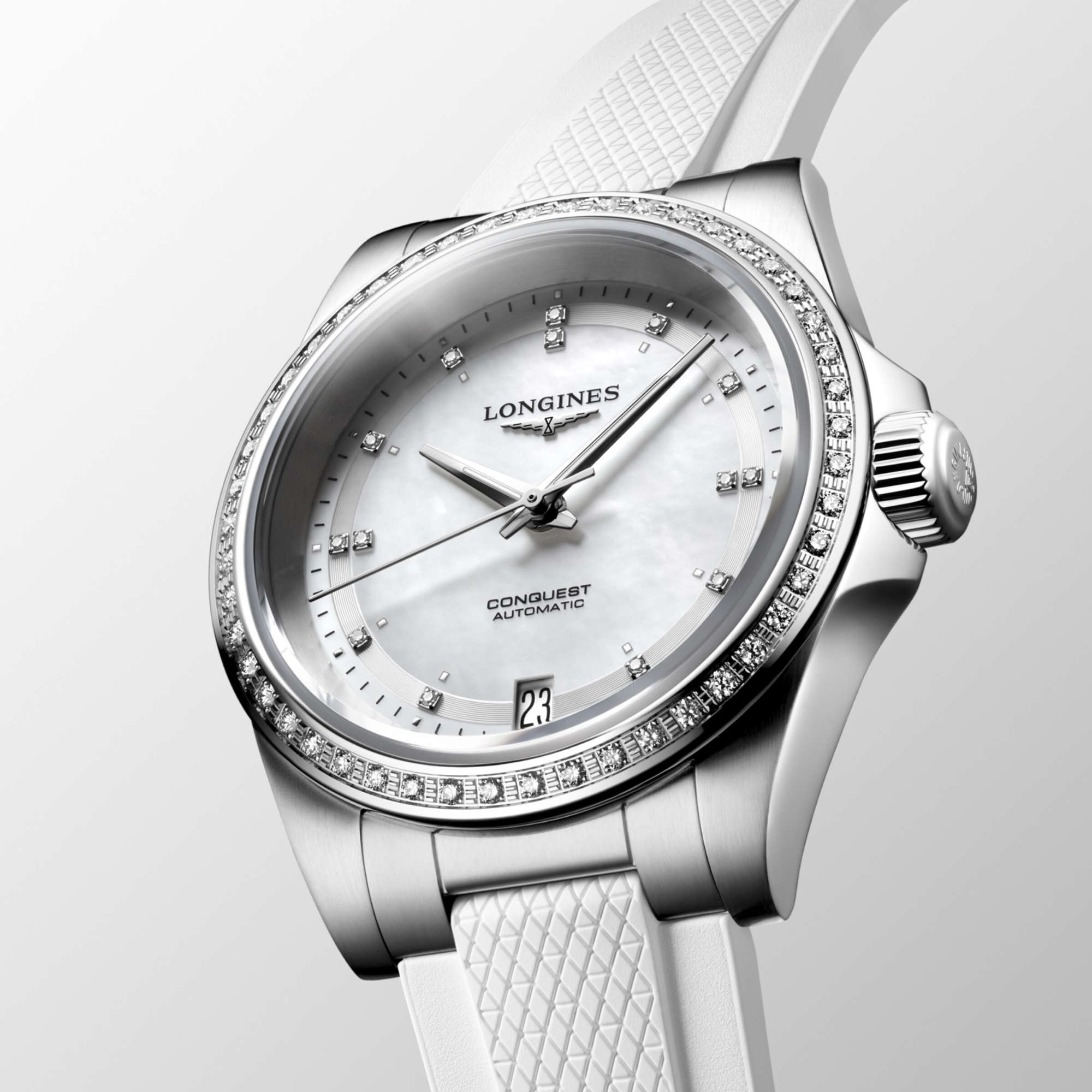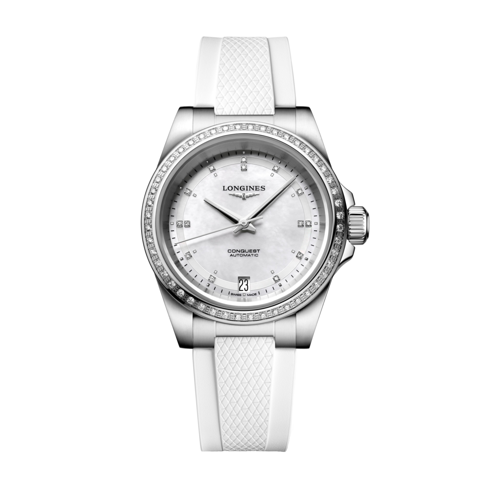 Weißes Kautschukarmband mit doppelt gesicherte Faltschliesse mit Mikro-Verstellsystem
