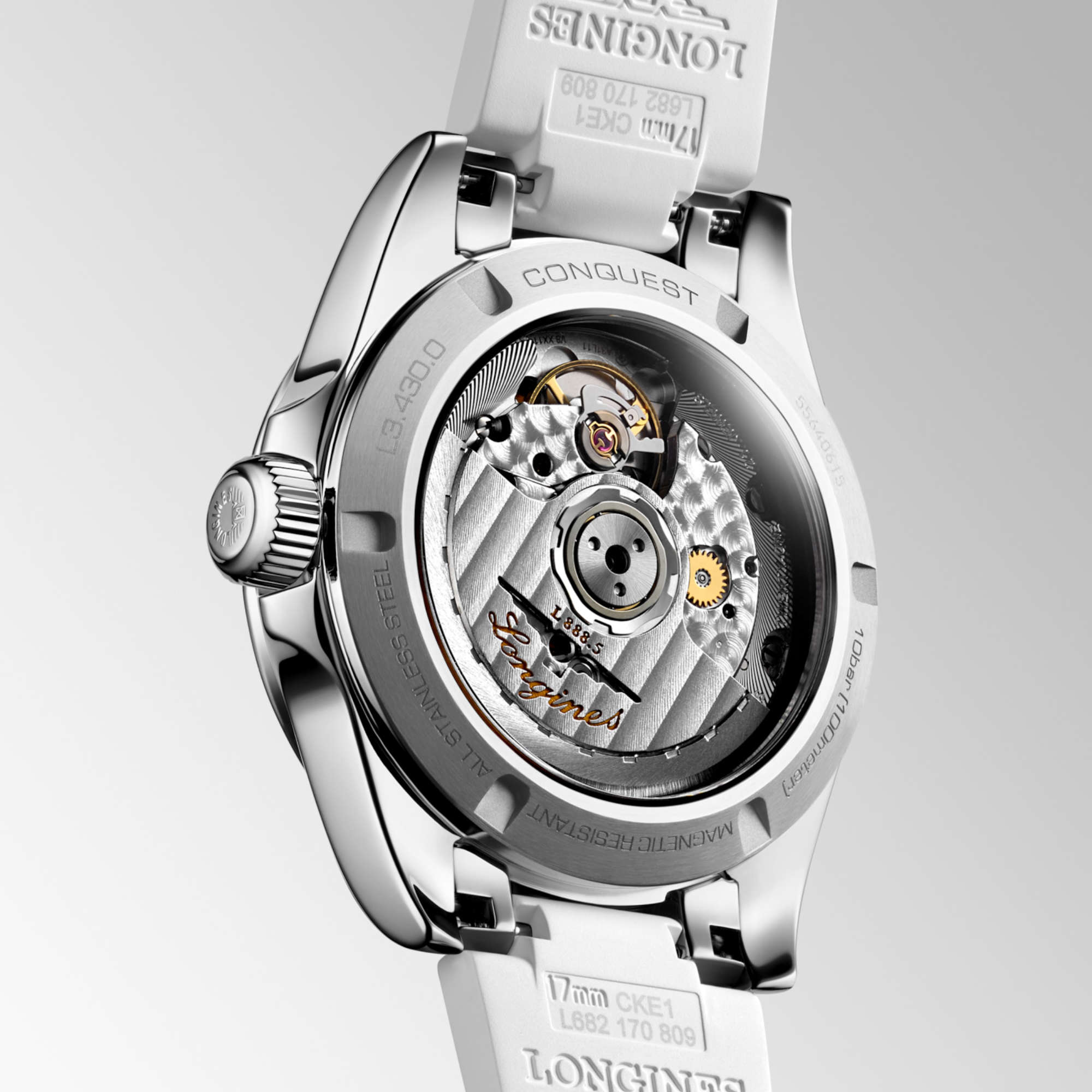 Verschraubter Gehäuseboden mit durchsichtigem Saphirglas