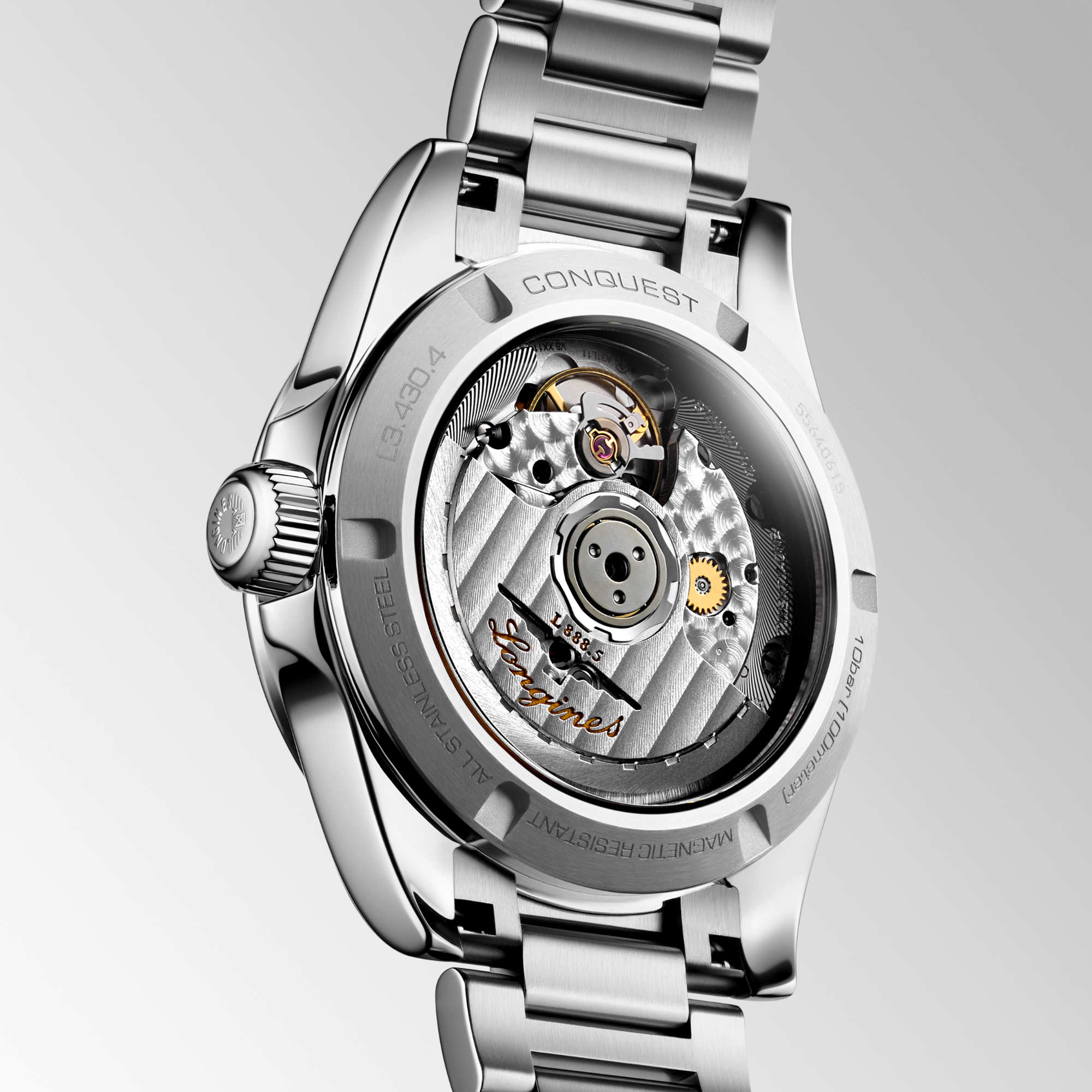 Verschraubter Gehäuseboden mit durchsichtigem Saphirglas
