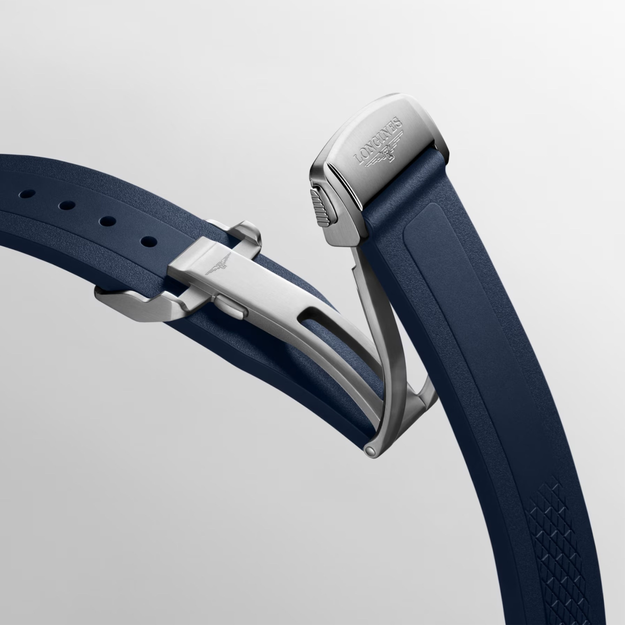 Blaues Kautschukarmband mit doppelt gesicherter Faltschliesse mit Mikro-Verstellsystem