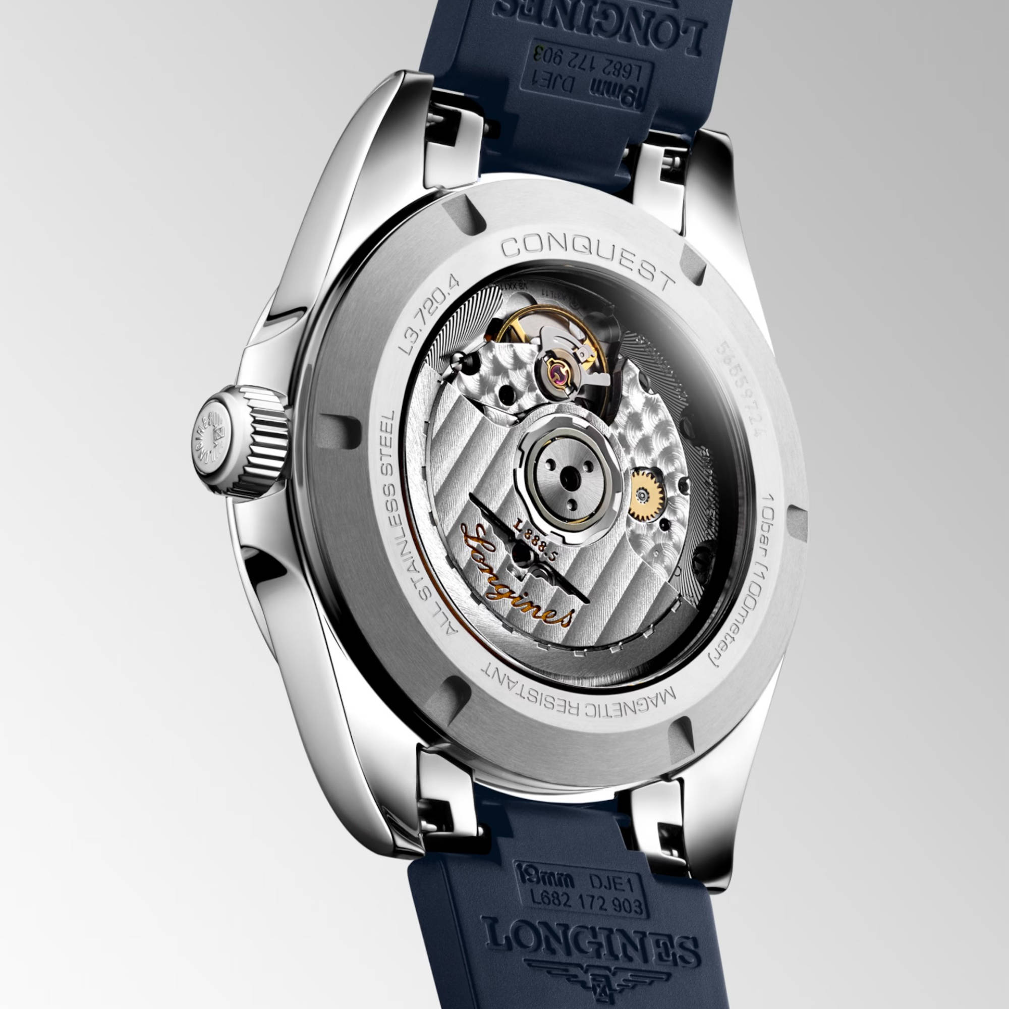 Verschraubter Gehäuseboden mit durchsichtigem Saphirglas
