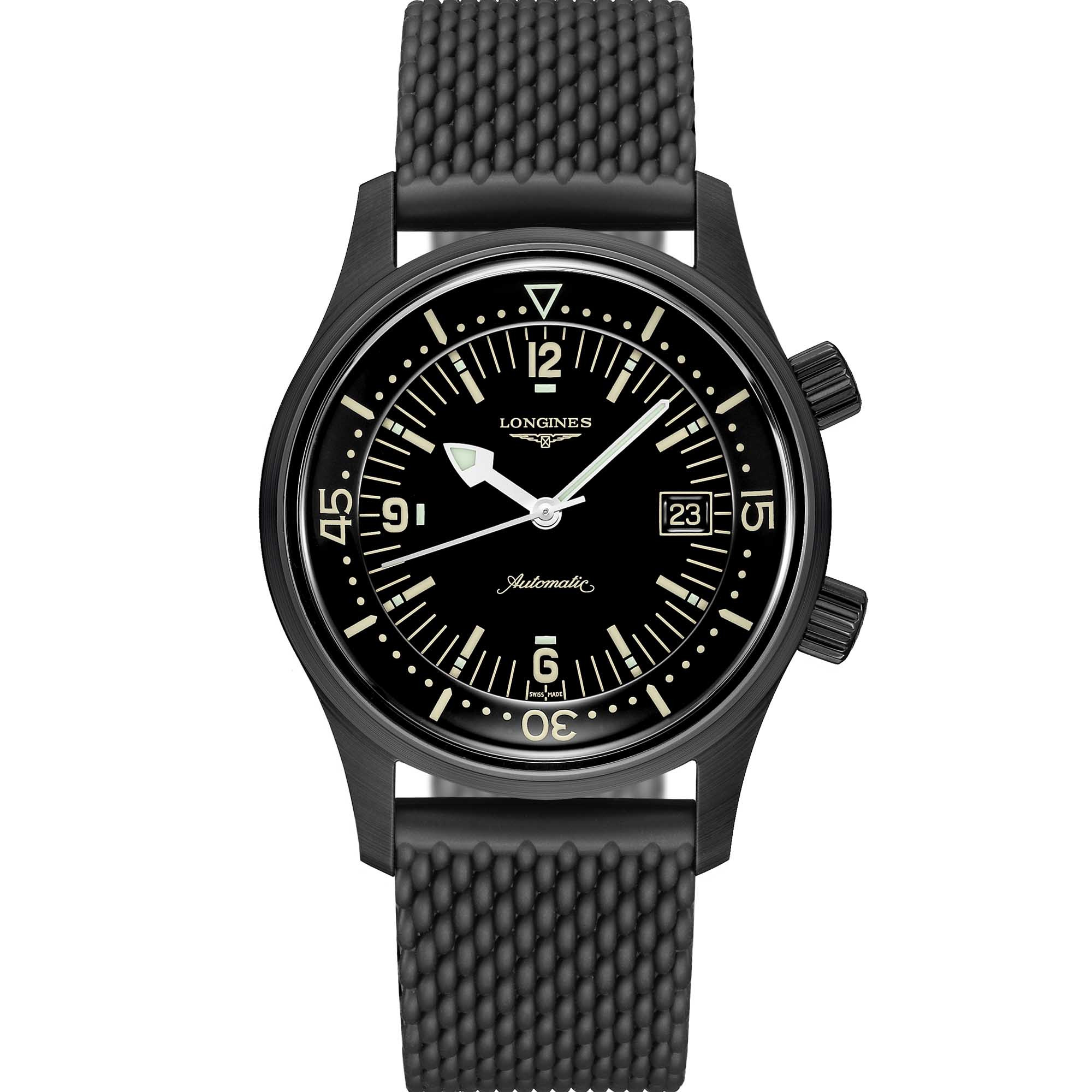 Schwarzes Kautschukarmband in Milanaise-Optik mit Faltschliesse aus Grade-2-Titan mit schwarzer PVD-Beschichtung und Tauchverlängerung