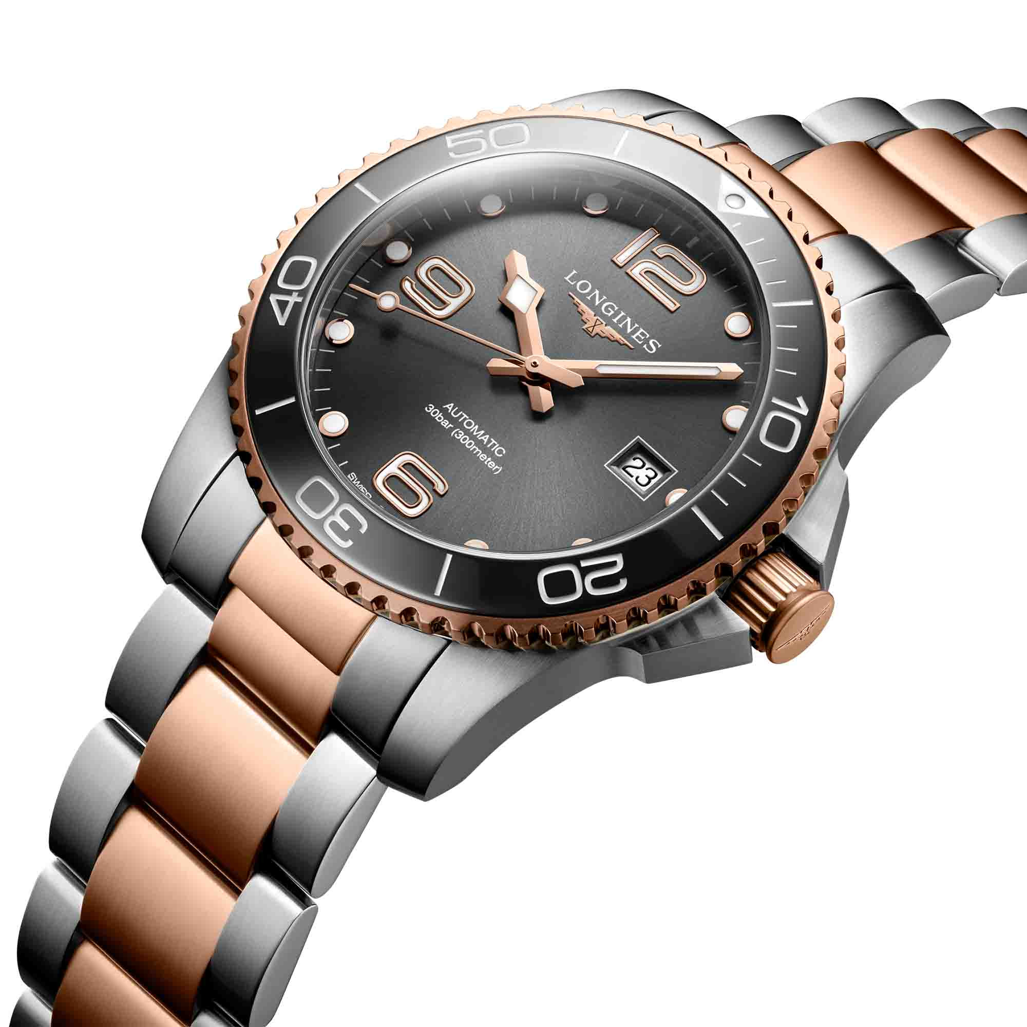Edelstahlarmband mit roséfarbener PVD-Beschichtung mit doppelter Sicherheitsfaltschließe und integrierter Taucherverlängerung