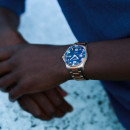 Edelstahlarmband mit roséfarbener PVD-Beschichtung mit doppelter Sicherheitsfaltschließe und integrierter Taucherverlängerung