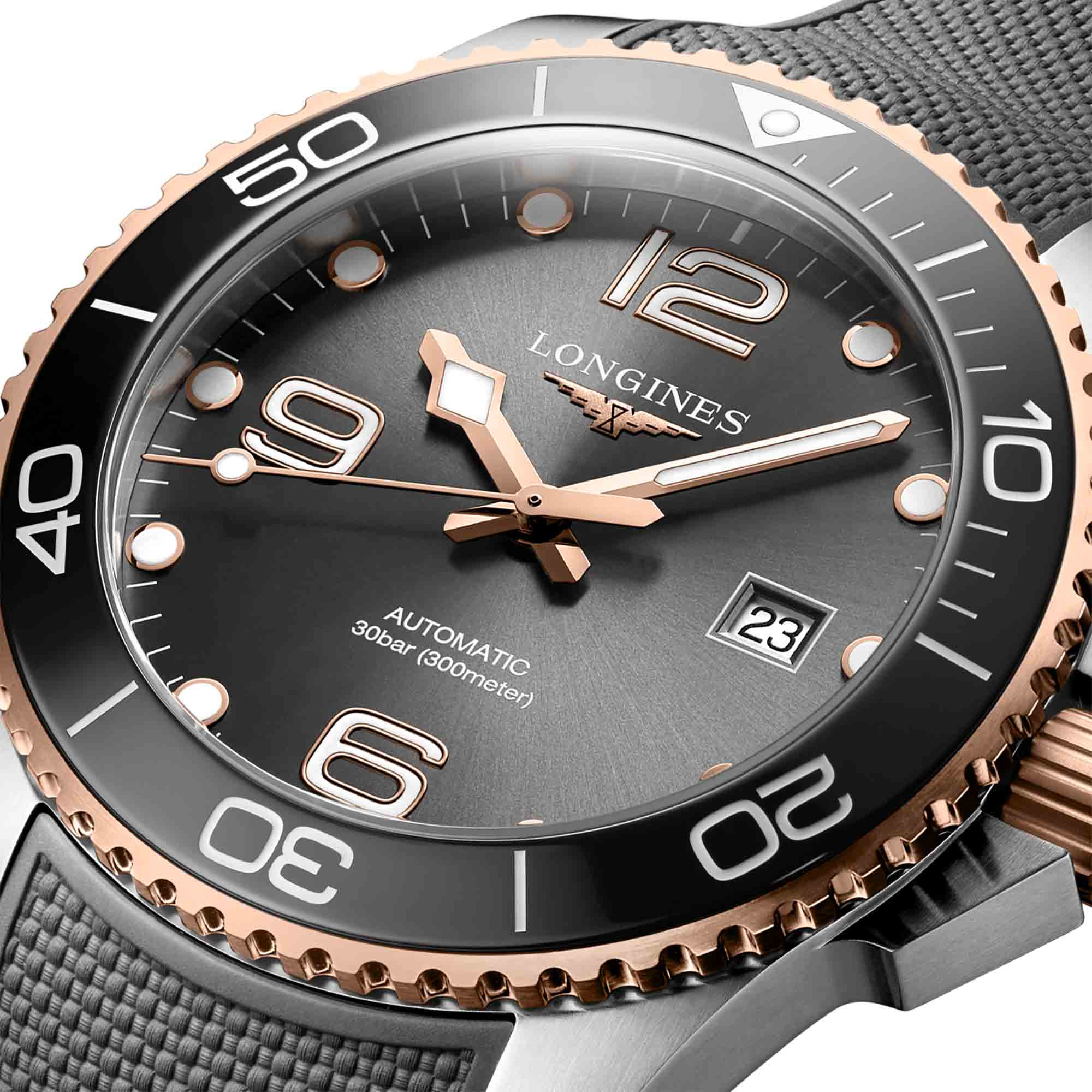 Roségoldfarbene Zeiger und Indizes mit Swiss Super-LumiNova®