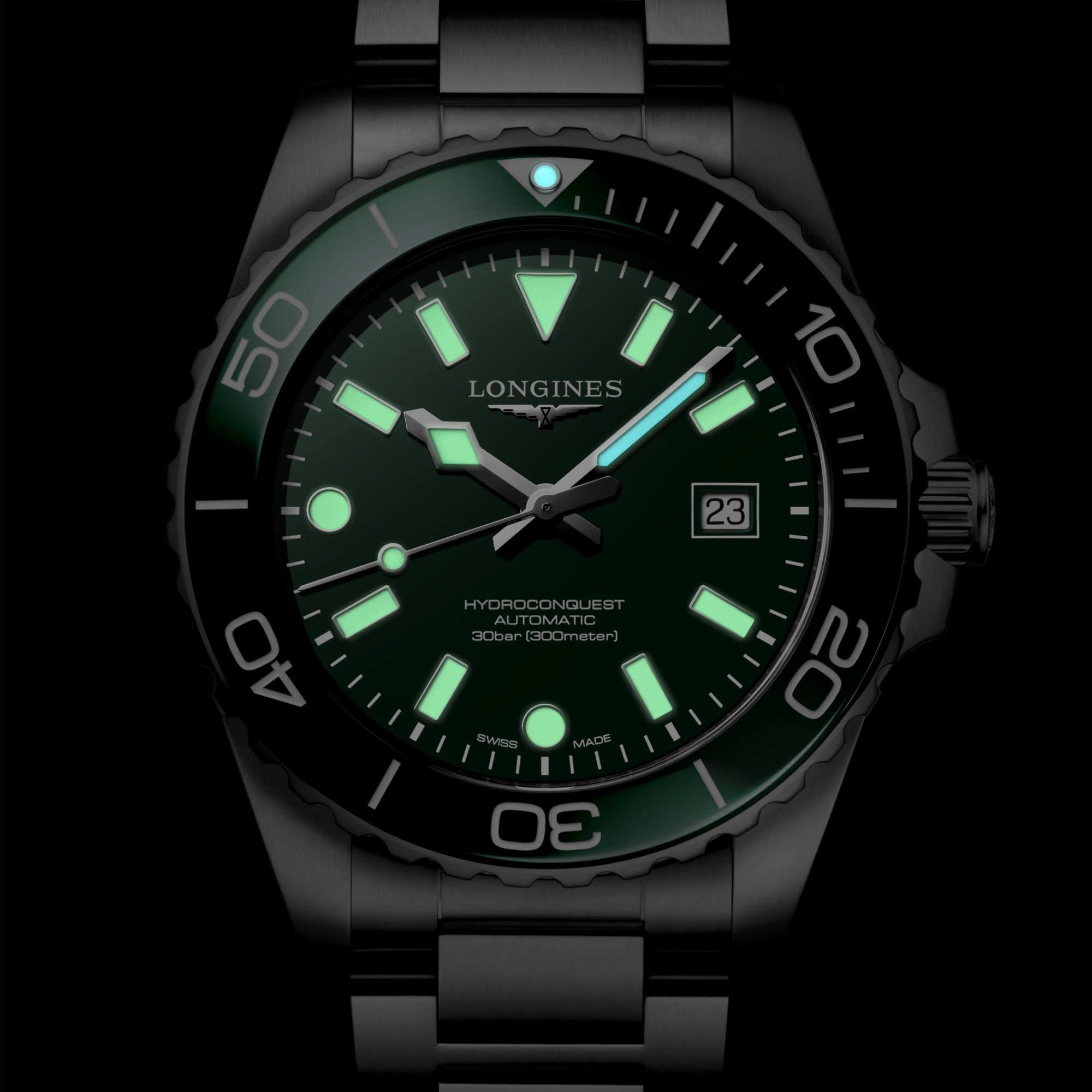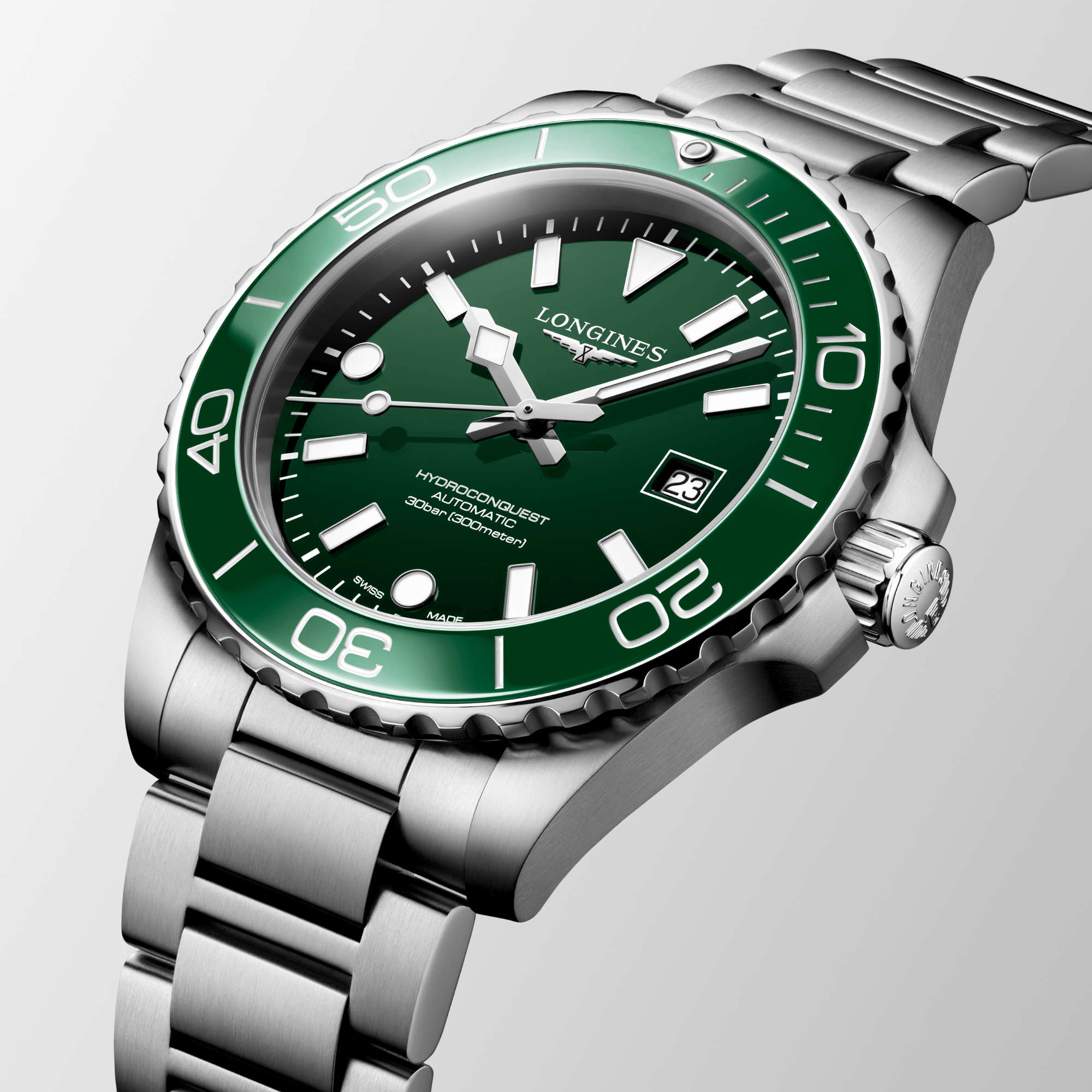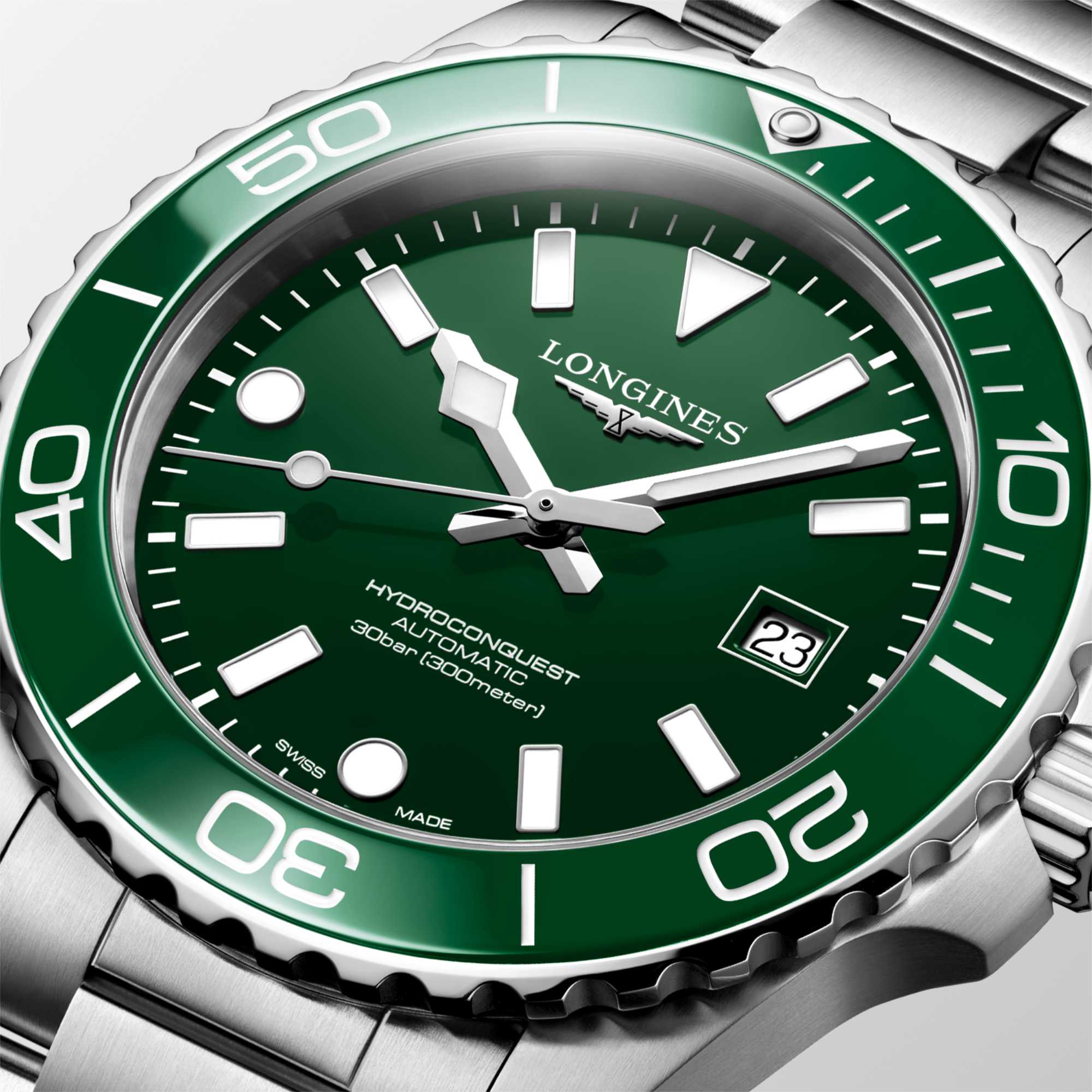 Ein grün lackiertes, poliertes Zifferblatt, eine einseitig drehbare Lünette in sattem Grün mit Keramikeinsatz, mit Super-LumiNova® beschichtete Indizes und Zeiger sowie eine Kapsel bei der „0“-Position, eine Wasserdichtigkeit bis 30 bar (300 Meter), eine verschraubte Krone sowie ein verschraubter Gehäuseboden zählen zu den charakteristischen Merkmalen dieses Zeitmessers. Das Modell wird mit einem Edelstahlarmband mit Doppel-Sicherheitsfaltschließe und Feinjustierung geliefert.