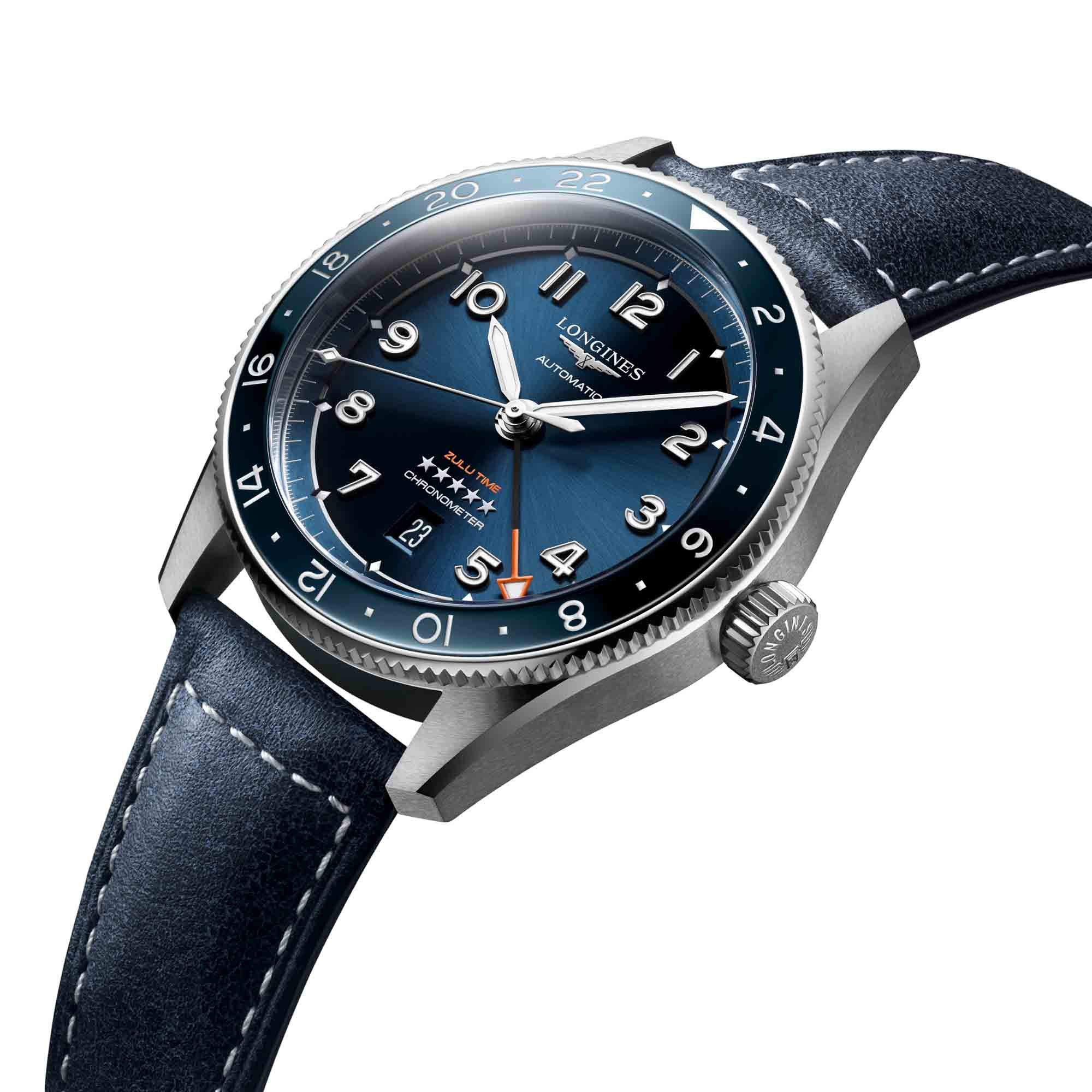 Blaues Leder mit Faltschließe und Mikro-Stellsystem sowie mit Wechselsystem