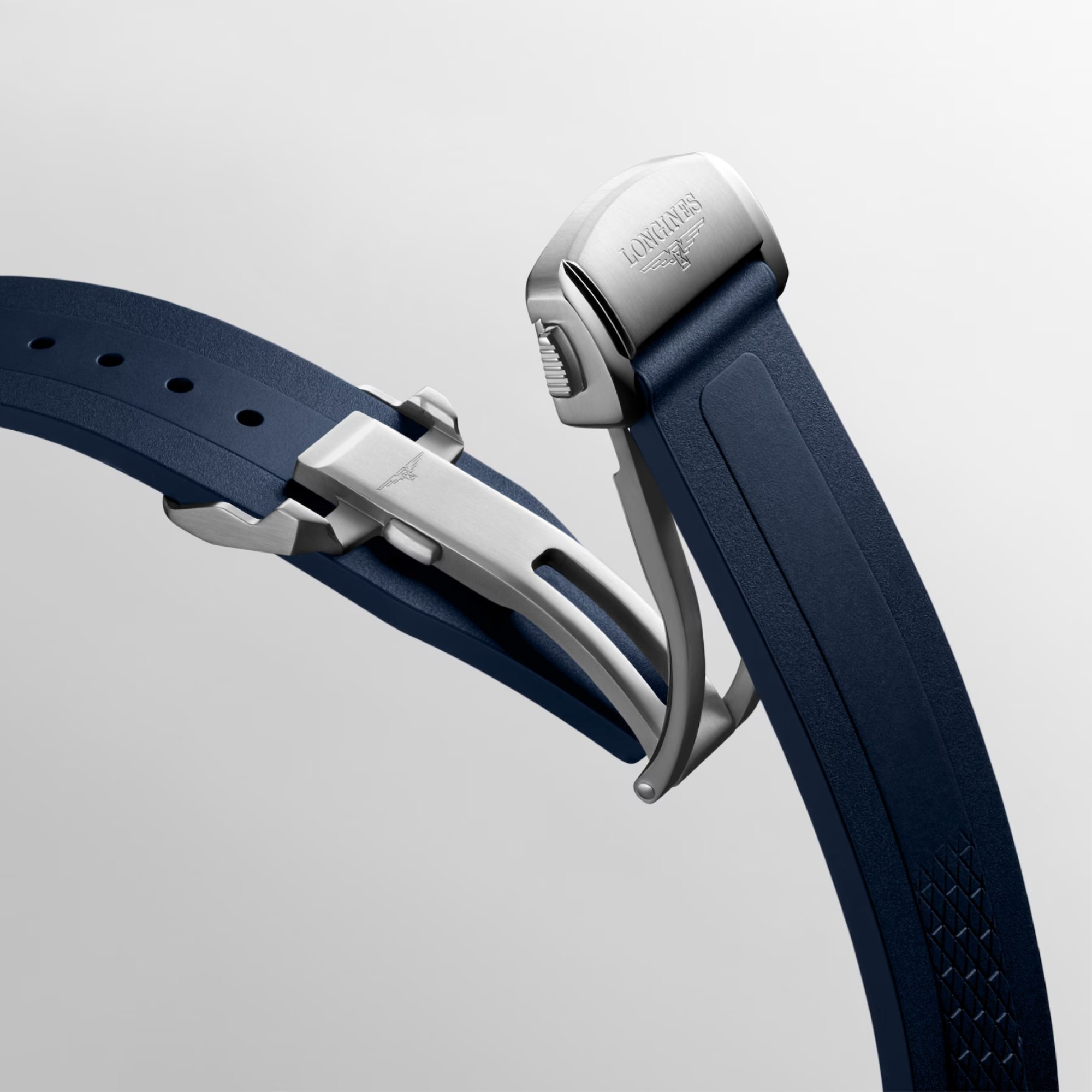 Blaues Kautschukarmband mit doppelt gesicherter Faltschliesse mit Mikro-Verstellsystem
