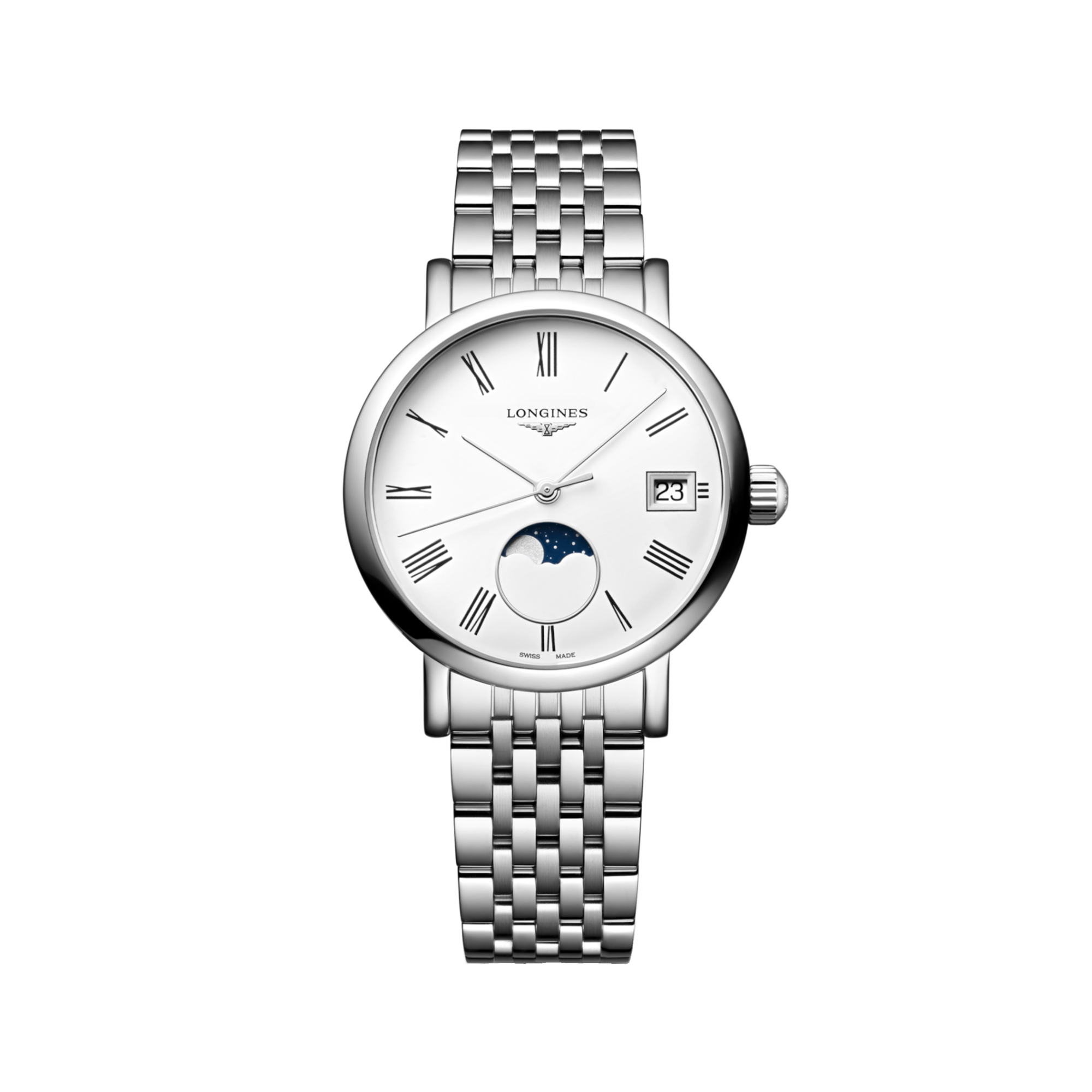 Stunden, Minuten, Sekunden, Datum, Mondphasenanzeige bei 6 Uhr