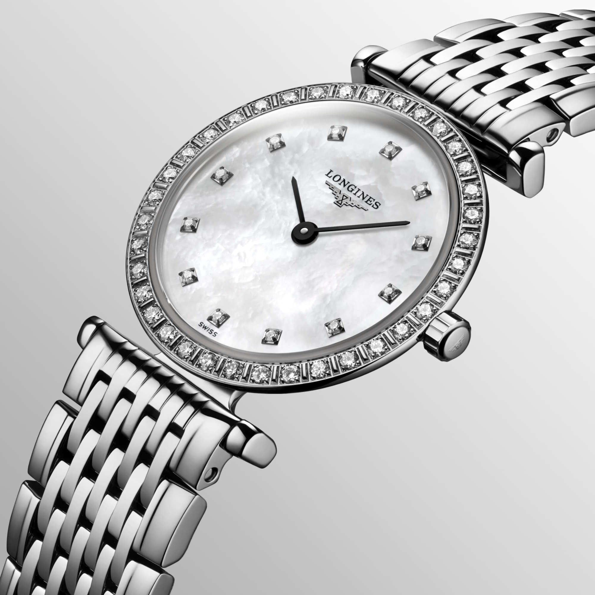 Weißes Perlmutt mit 12 Diamanten-Indizes 0.034ct. VS-SI