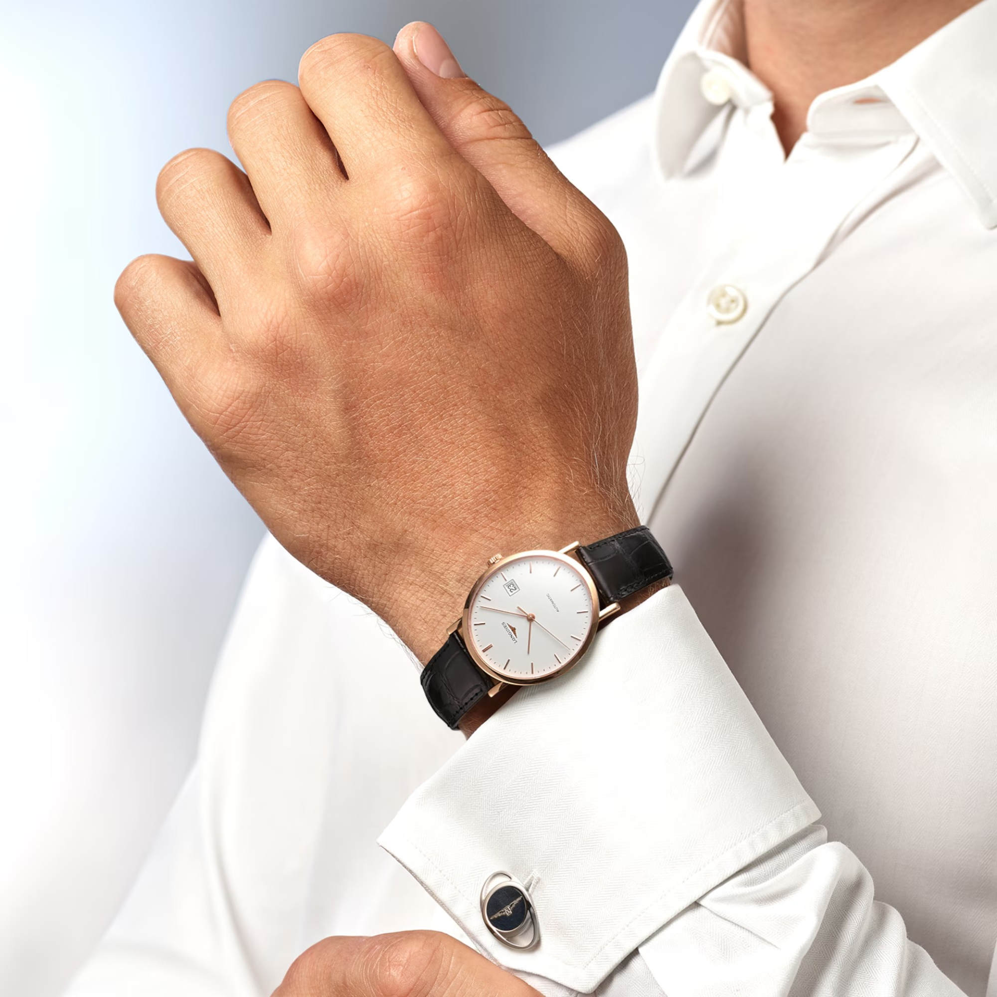 Schwarzes Alligatorlederarmband mit Dreifach-Sicherheitsfaltschließe und Drückern