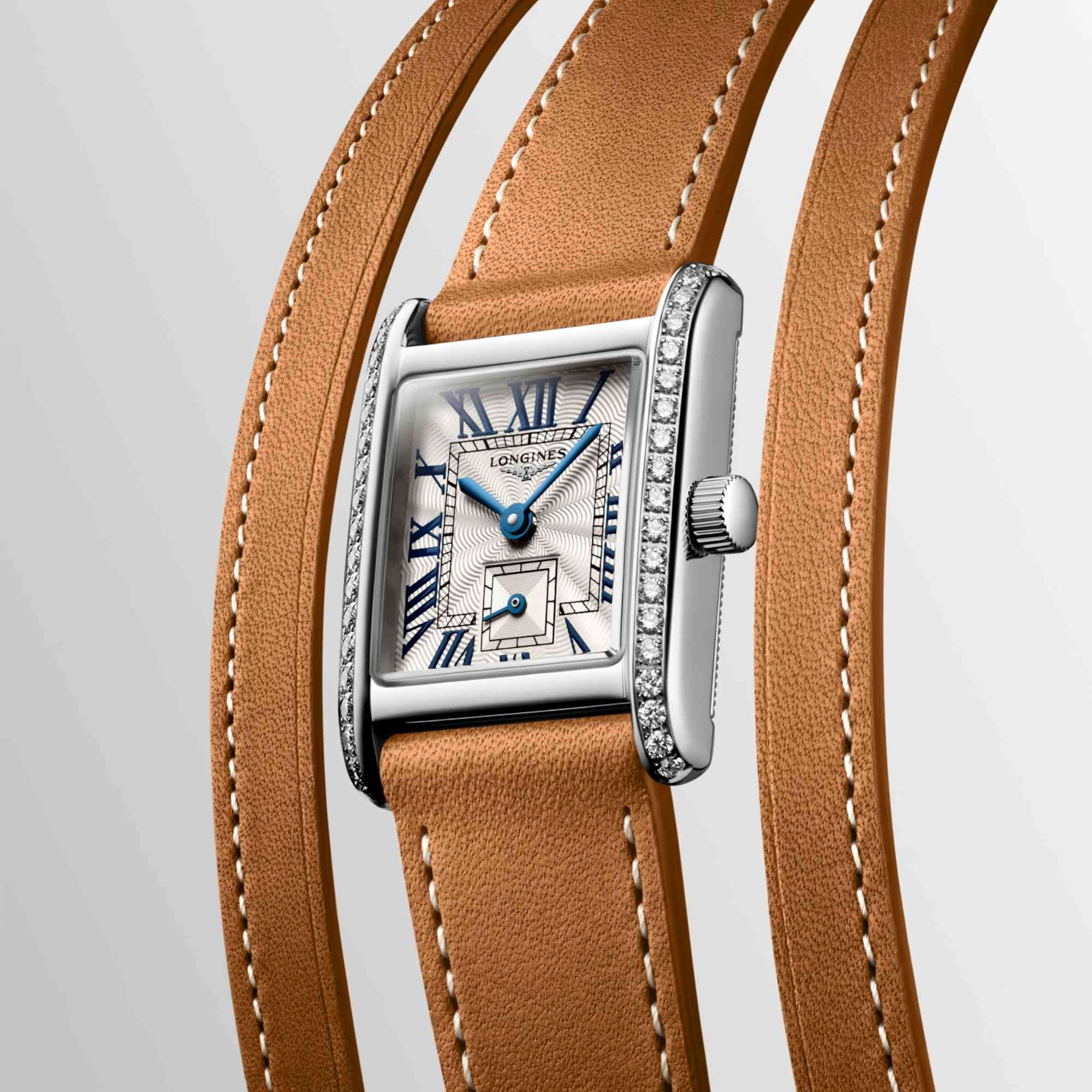 Doppeltour-Armband aus beigem Nappaleder mit elfenbeinfarbenen Steppnähten und einer Dornschließe aus Edelstahl