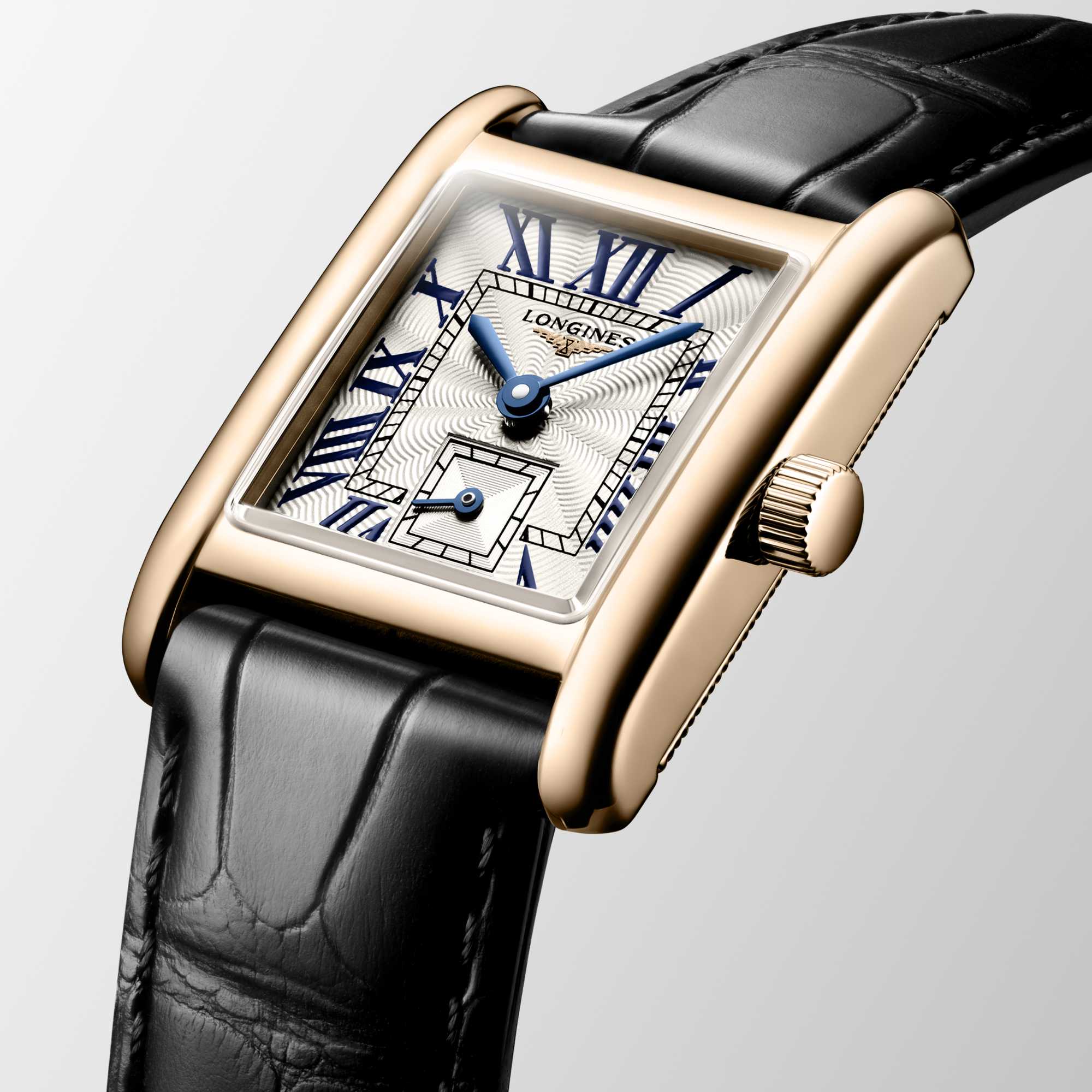Ref. L5.200.8.71.0 - Mit ihrem diskreten Profil, dem klassischen Design und den ästhetischen Variationen, die zugleich zeitgemäß und zeitlos sind, ist die Mini DolceVita ein Meisterwerk, das den stillen Luxus und die zeitgenössische Eleganz von Longines gleichermaßen perfekt zum Ausdruck bringt. Die sorgfältig gestaltete Kollektion ist eine Erweiterung der ursprünglichen DolceVita Familie, inspiriert von einer Longines Legende aus dem Jahr 1927. Die Mini DolceVita Uhren sind in einer beeindruckenden Auswahl an Materialien und Farben erhältlich. Sie haben ein diskretes Gehäuse von 21,50 mm x 29 mm und sind mit oder ohne Diamanten erhältlich.