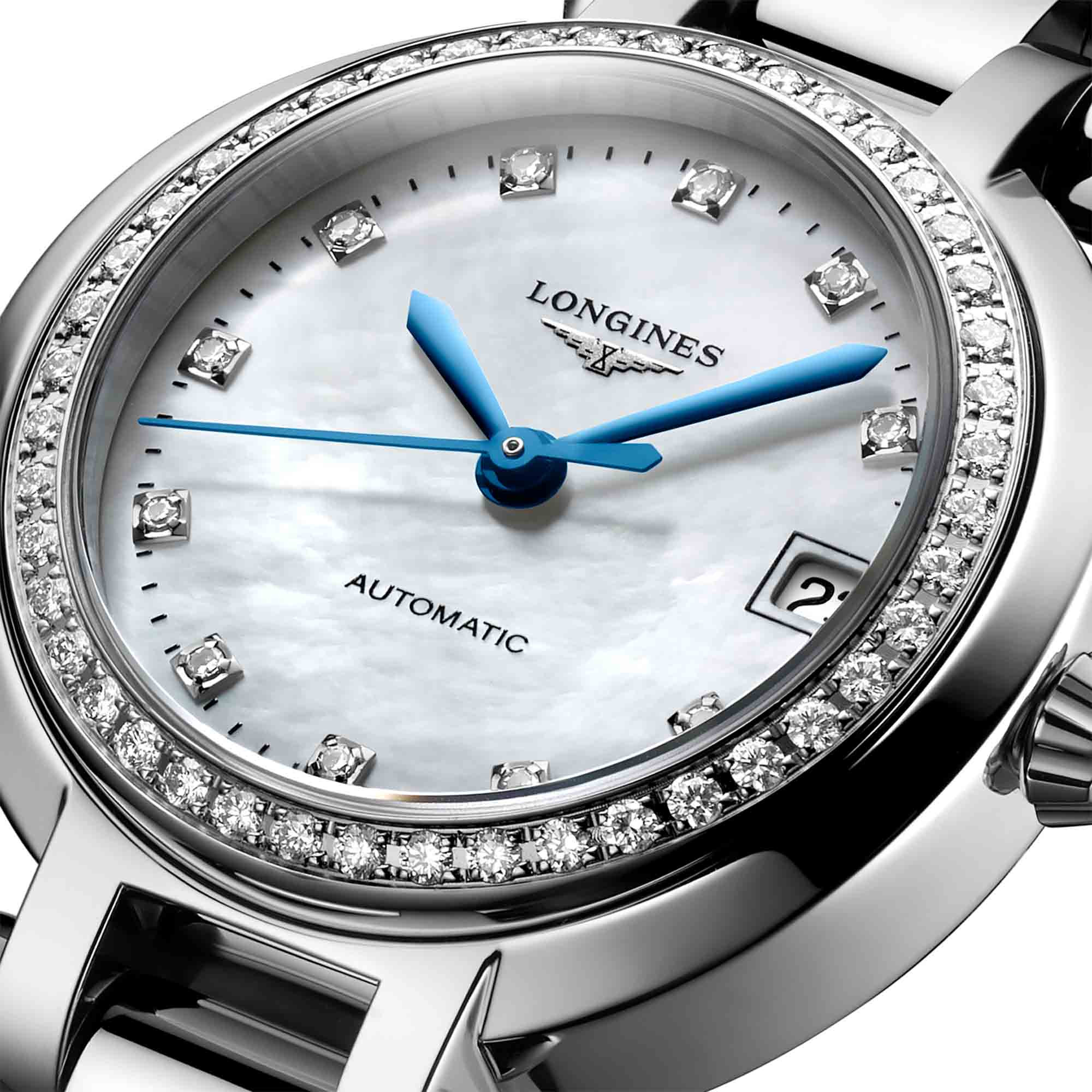 Diamanten: Zifferblatt mit 11 Diamanten (Top Wesselton VVS) mit einem Gesamtgewicht von 0,032 Karat besetzt.