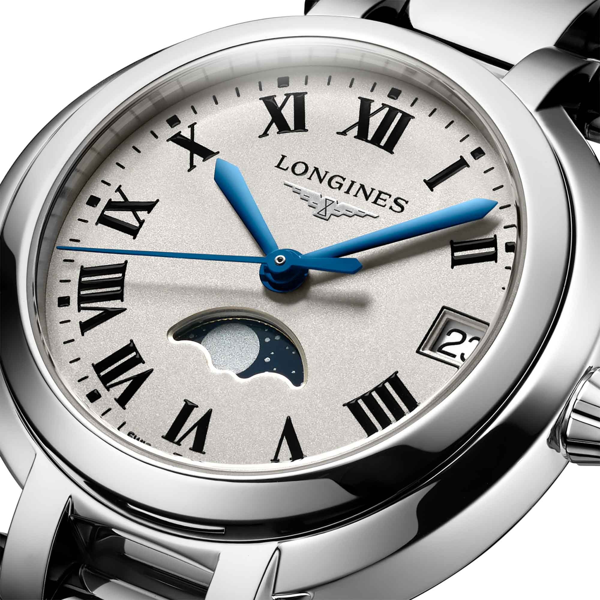 Stunde, Minute, Sekunde, Datum bei 3 Uhr, Mondphasenanzeige bei 6 Uhr, E.O.L.