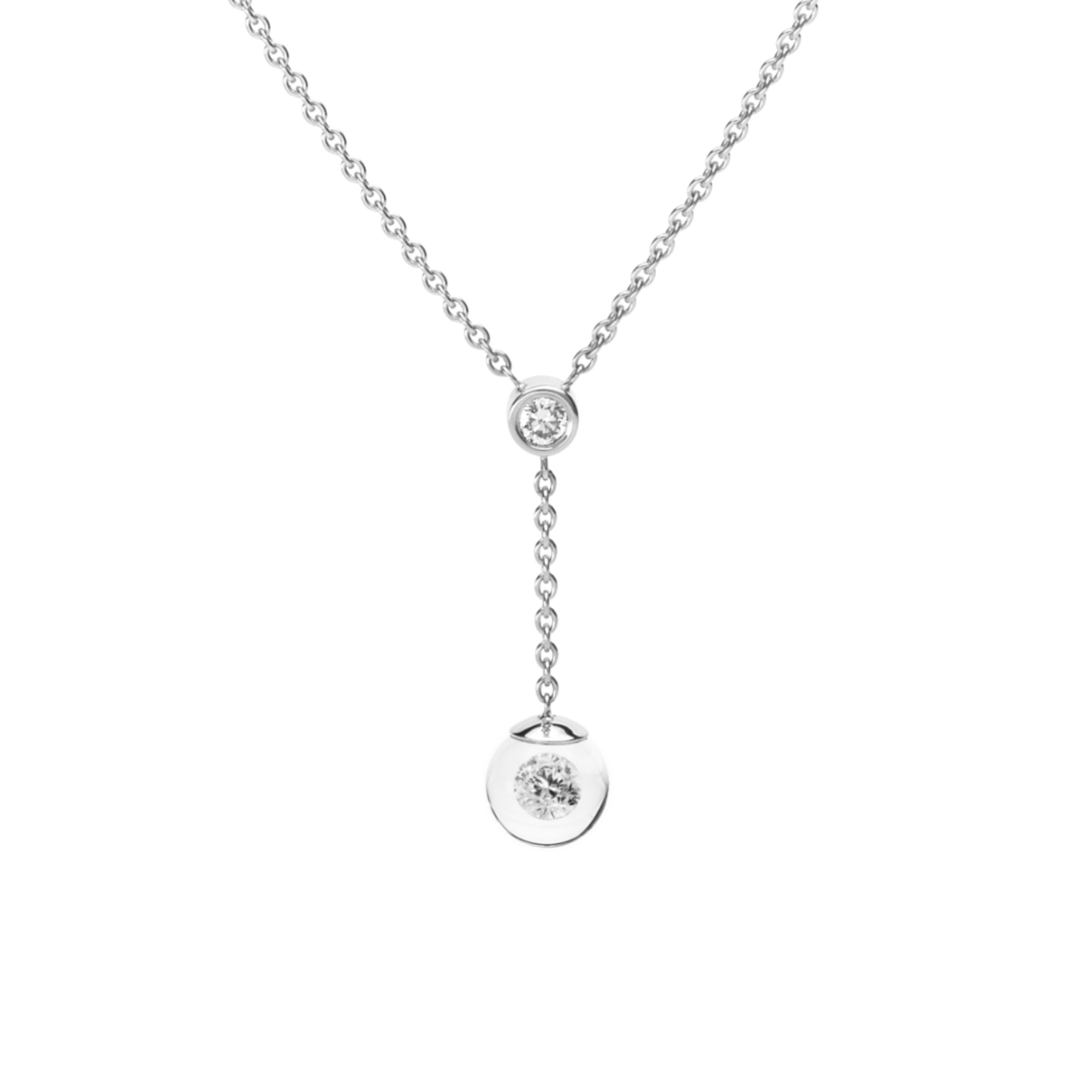 Ref. DH967-PT - Kann ein Brillant schweben? Bei schmuckwerk schon! Im Anhänger Glasklar schwebt ein Brillant in einer Kugel aus Glas. Ein einmaliges handwerkliches Kunststück. Mit viel Fingerspitzengefühl wird die Glaskugel von Hand geformt, um den Brillanten möglichst perfekt zu umschließen. Eine neue Art der Fassung, verblüffend und wunderschön. Und das Beste: Das Glas wirkt wie eine Lupe und lässt den Stein dreimal so groß aussehen!