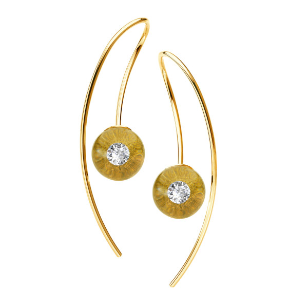 ReferenzDO707-GG-GGAusführung750/- GelbgoldBesatz2 Brillanten 0.16 ct. TW/VS Glaskugeln 9 mm mit Gelbgoldplatte