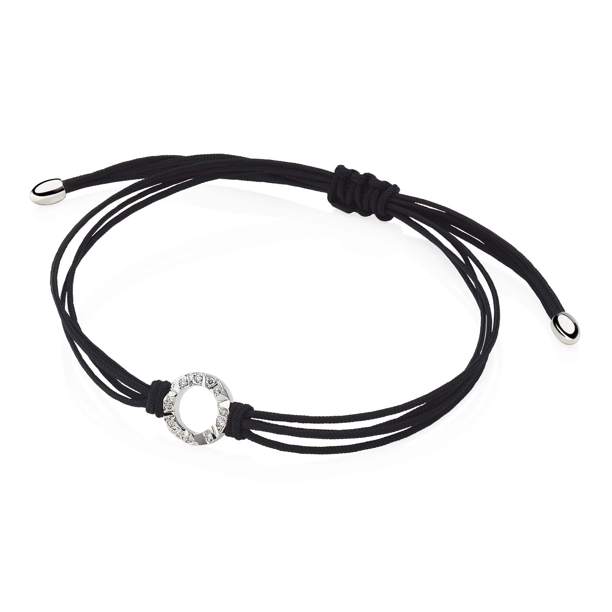 Ref. GA205-WG-9 - Das passende Armband zu unserem ALPEN-Ring: dezent und modisch findet sich das charakteristische Cliff, mit Brillanten ausgefasst, aufgefädelt auf einem Textilband wieder. Dieses Armband kann alleine getragen werden, oder mit anderen Armbändern kombiniert werden.