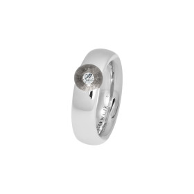 Ref. GR424-WG - Unsere ALPEN-Neuheit: in diesem schlichten und eleganten Solitaire-Ring umschließt das charakteristische Cliff einen einzelnen Brillanten. Die etwas breitere, runde Ringschiene bildet hierbei einen aufregenden Kontrast zu dem kantigen Cliff.