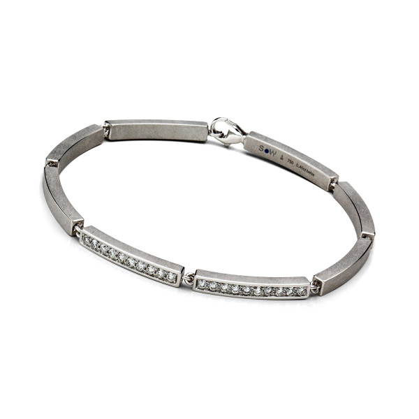 Ref. SA116-WG - Das passende Armband zu Ihrem Kettenring: Fein, elegant und beweglich. Mit zwei Brillantelementen oder Komplett ausgefasst. Tragen Sie zwei Bänder nebeneinander: ein zartes und ein stärkeres. Egal, für welche Varianten Sie sich entscheiden: Sie werden es lieben und jeden Tag tragen, denn es gehört in der Sekunde zu Ihnen, in der Sie es anlegen.